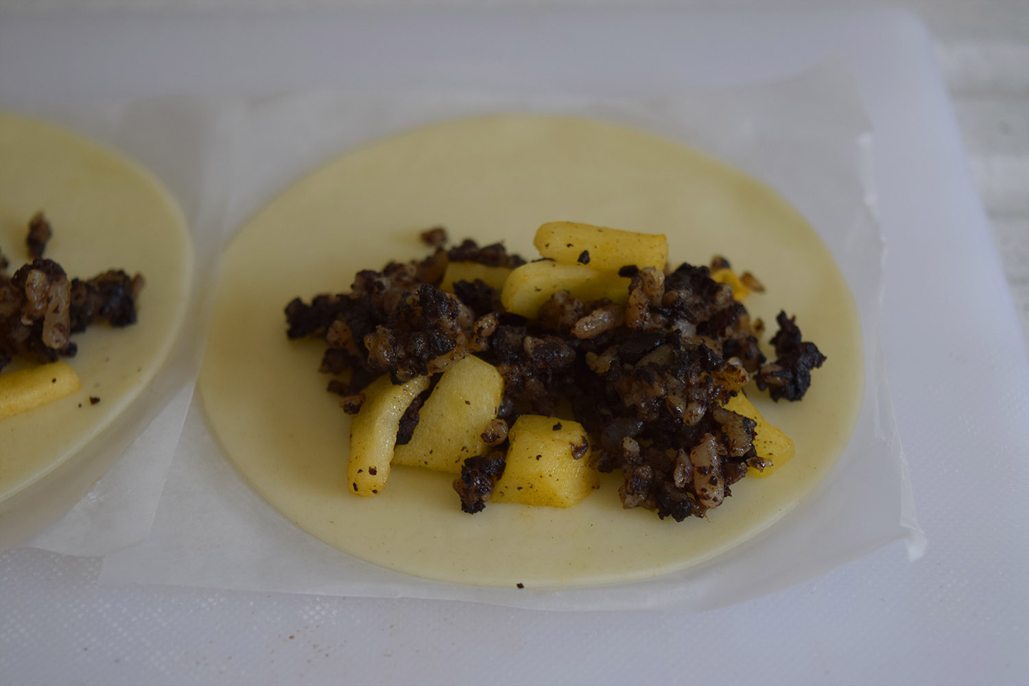 Hoy os traigo una receta ideal para tomar como aperitivo y que hará las delicias de vuestros invitados: empanadillas de morcilla y manzana.