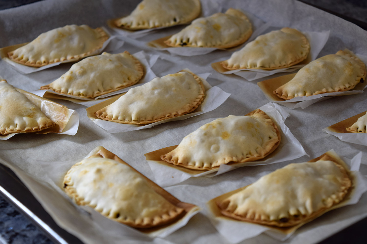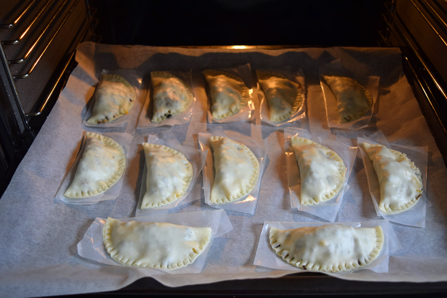 Para hacer las empanadillas yo prefiero usar el horno porque así son más sanas al no freírlas en aceite. Ponemos las empanadillas en la bandeja del horno y, si queréis, podéis pintarlas con un poco de huevo para que queden doradas. Como siempre que hago cosas en el horno con masas de empanada, quebrada, etc. no suelo usar huevo para comerlas en casa porque, aunque queden menos bonitas, ahorro ingredientes ya que luego siempre acabo tirando el huevo que sobra…