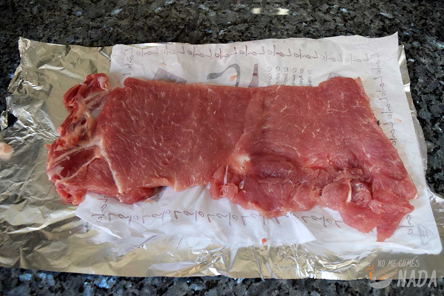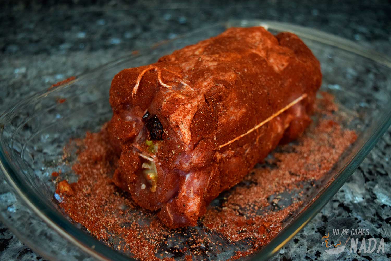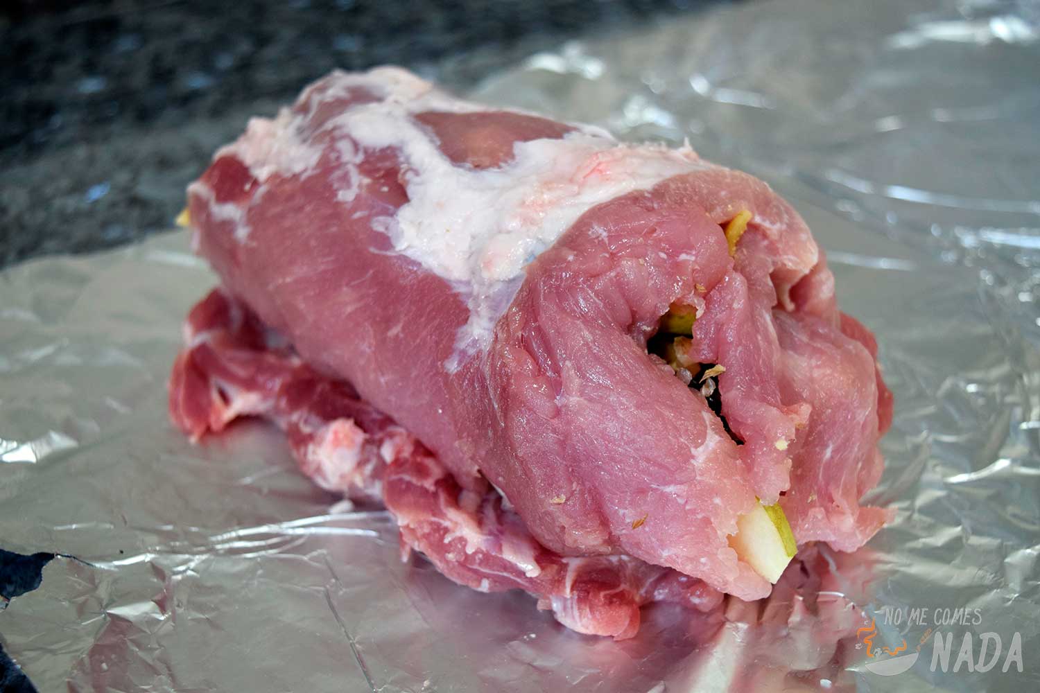 El lomo de cerdo sería ideal que fuera no muy ancho y así os puedan servir un trozo largo para que tenga buena forma rectangular (no como en mi caso que el lomo era muy grueso y casi era cuadrado…). Le podéis pedir al carnicero que os lo abra para rellenarlo para que así no tengáis que pelearos vosotros en casa con el cuchillo.