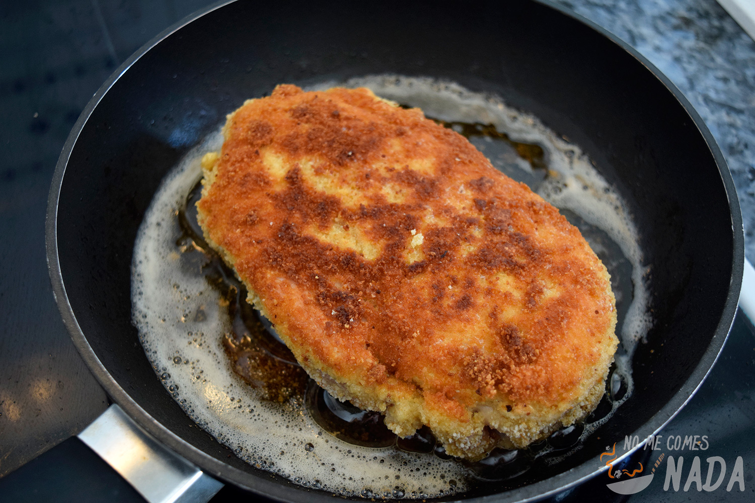 Cubrimos el fondo de una sartén con generoso aceite y la ponemos a calentar a fuego medio-alto. Cuando esté bien caliente, freímos las pechugas lo justo para que se doren ligeramente y queden bien selladas.