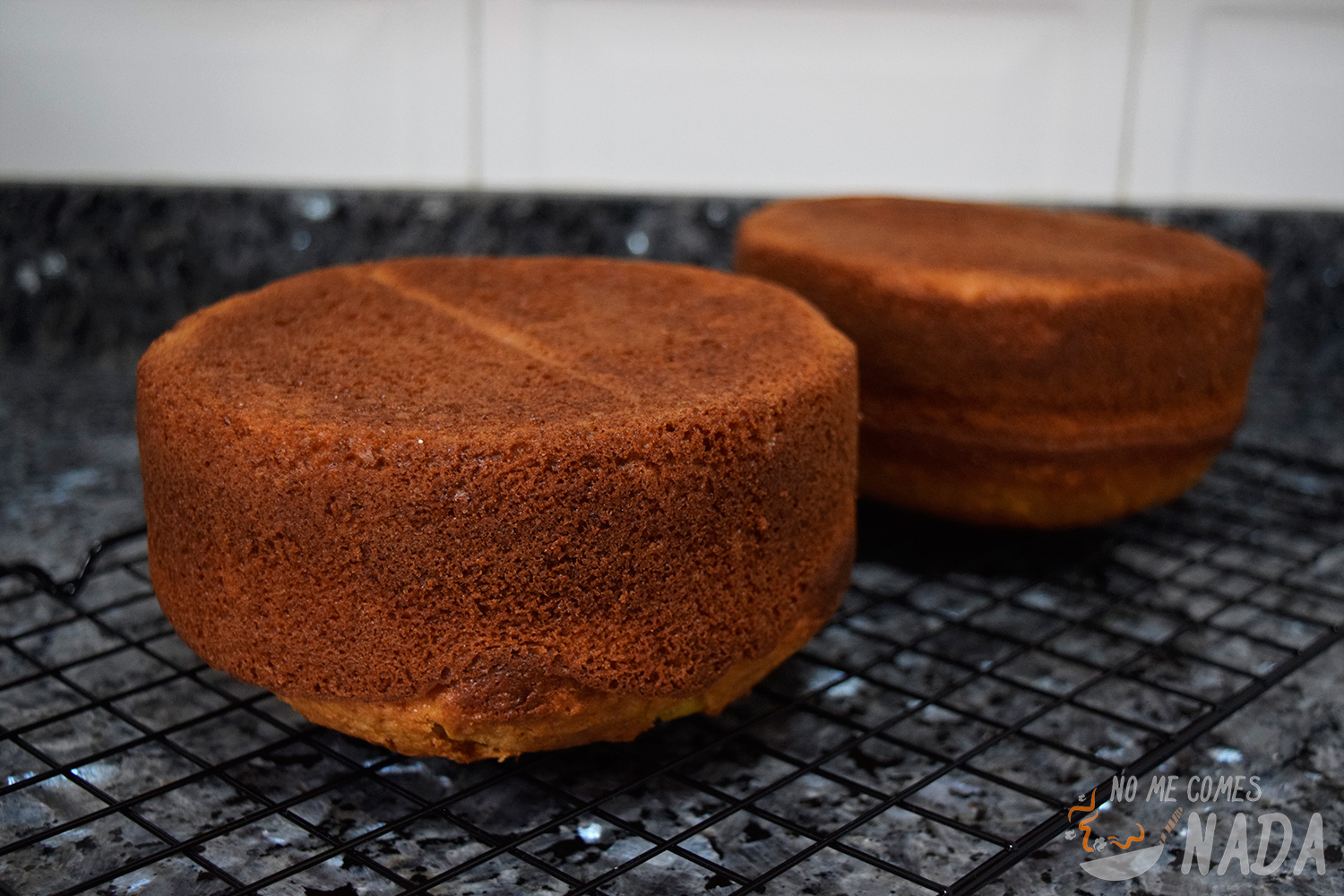 Para que los bizcochos queden bien húmedos, antes de que se enfríen totalmente, los envolveremos en film y los dejaremos enfriar en la nevera (o en el congelador si tenemos prisa), para que cojan consistencia y podamos manipularlos mejor.