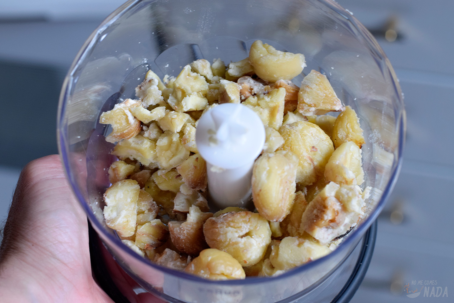 Empezaremos preparando el puré de castañas. Para ello simplemente tenemos que cocinar las castañas para que estén blandas y se puedan triturar. Aquí os dejo un poco a vuestra elección la manera de hacerlo: cocidas, al microondas o asadas en el horno. Yo las cocí en agua hasta que estuvieron blandas (unos 40 minutos).