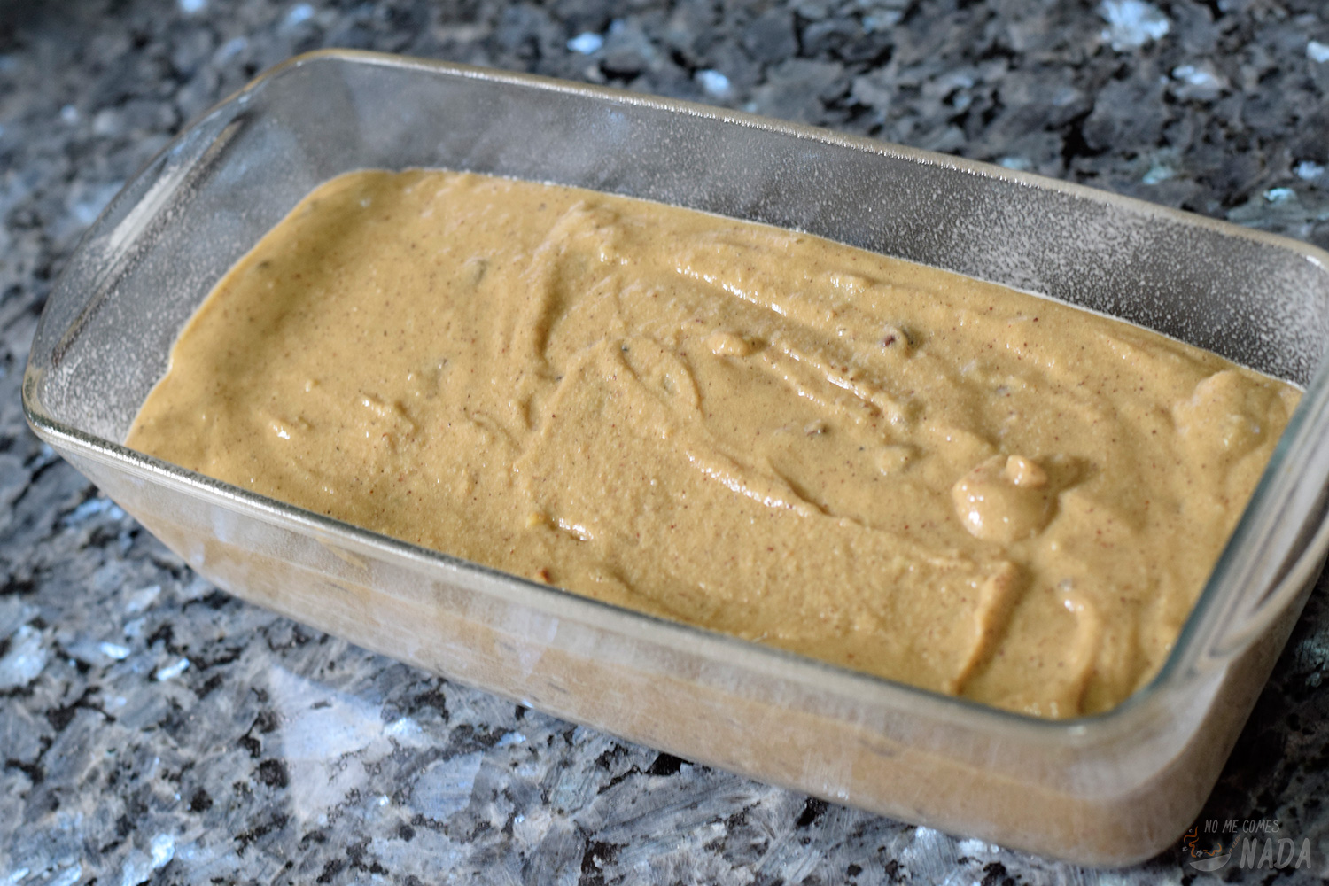 Untamos un molde con aceite, mantequilla o spray desmoldante y vertemos la masa.