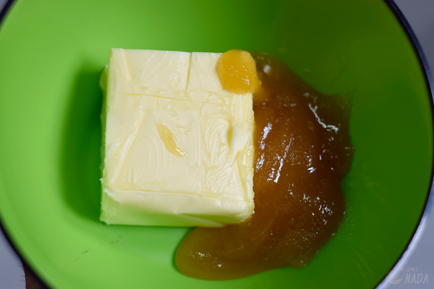 Añadimos la mantequilla troceada, la miel y la leche. Volvemos a batir hasta que esté todo integrado en la mezcla.