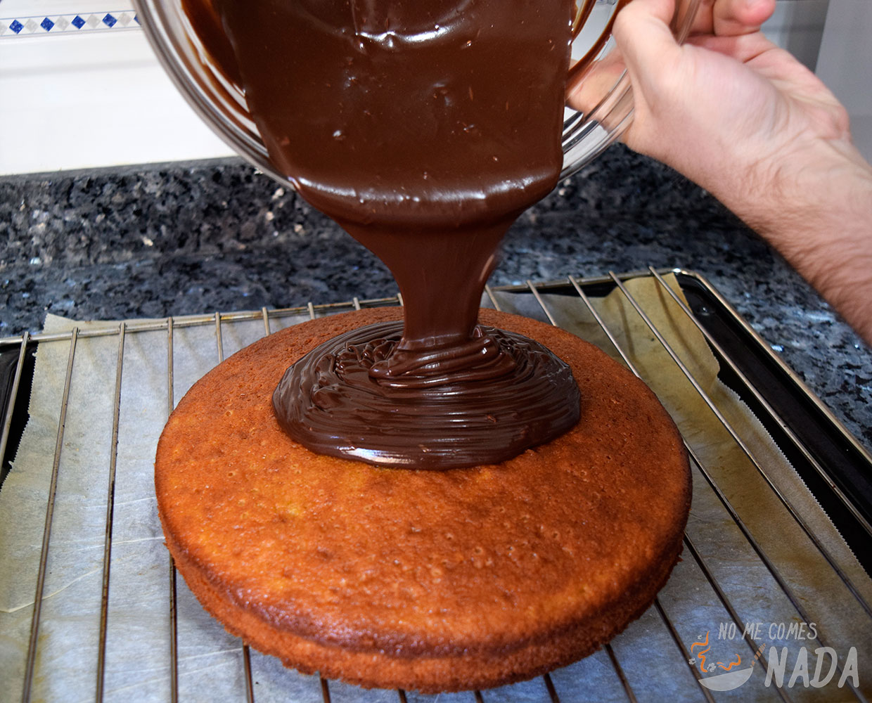 Así que, en base a eso, si echáis un poco menos de chocolate para que la cobertura os quede más líquida, no sufriréis como yo cubriendo el bizcocho :P