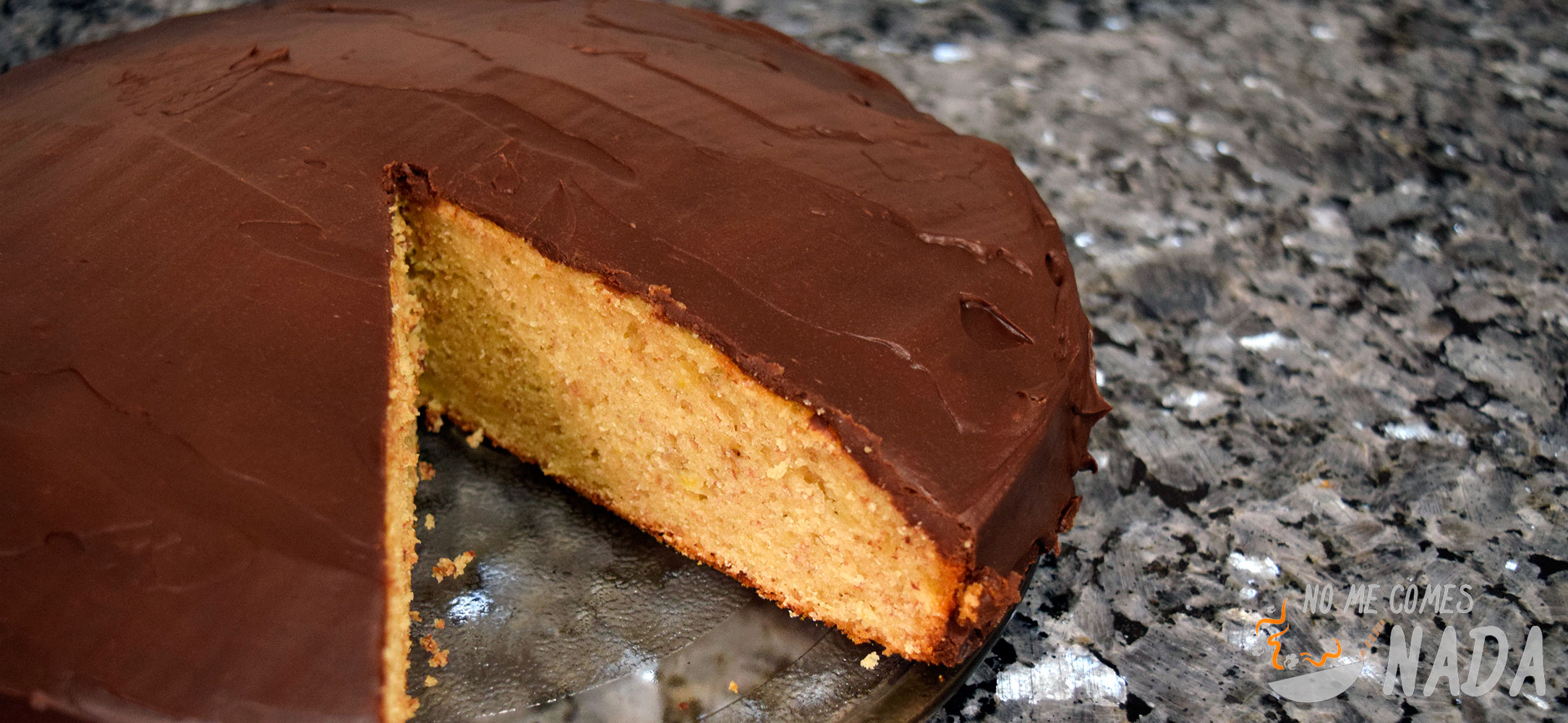 Y nada más, dejamos enfriar la cobertura para que se endurezca y a celebrar nuestro primer aniversario con este dulce bizcocho de plátano con cobertura de chocolate.