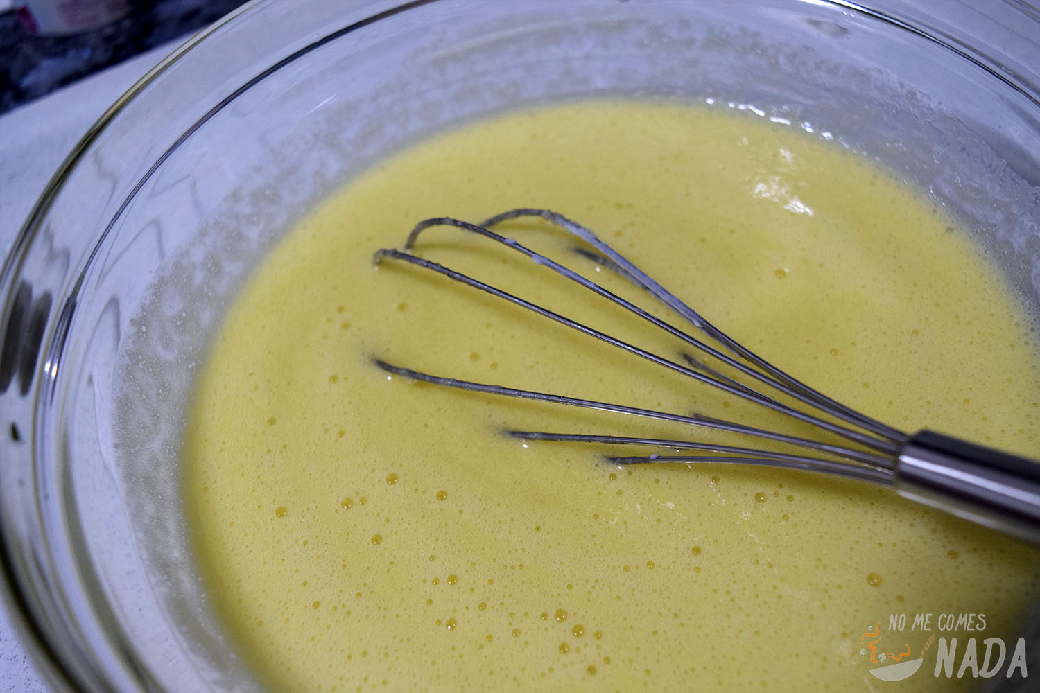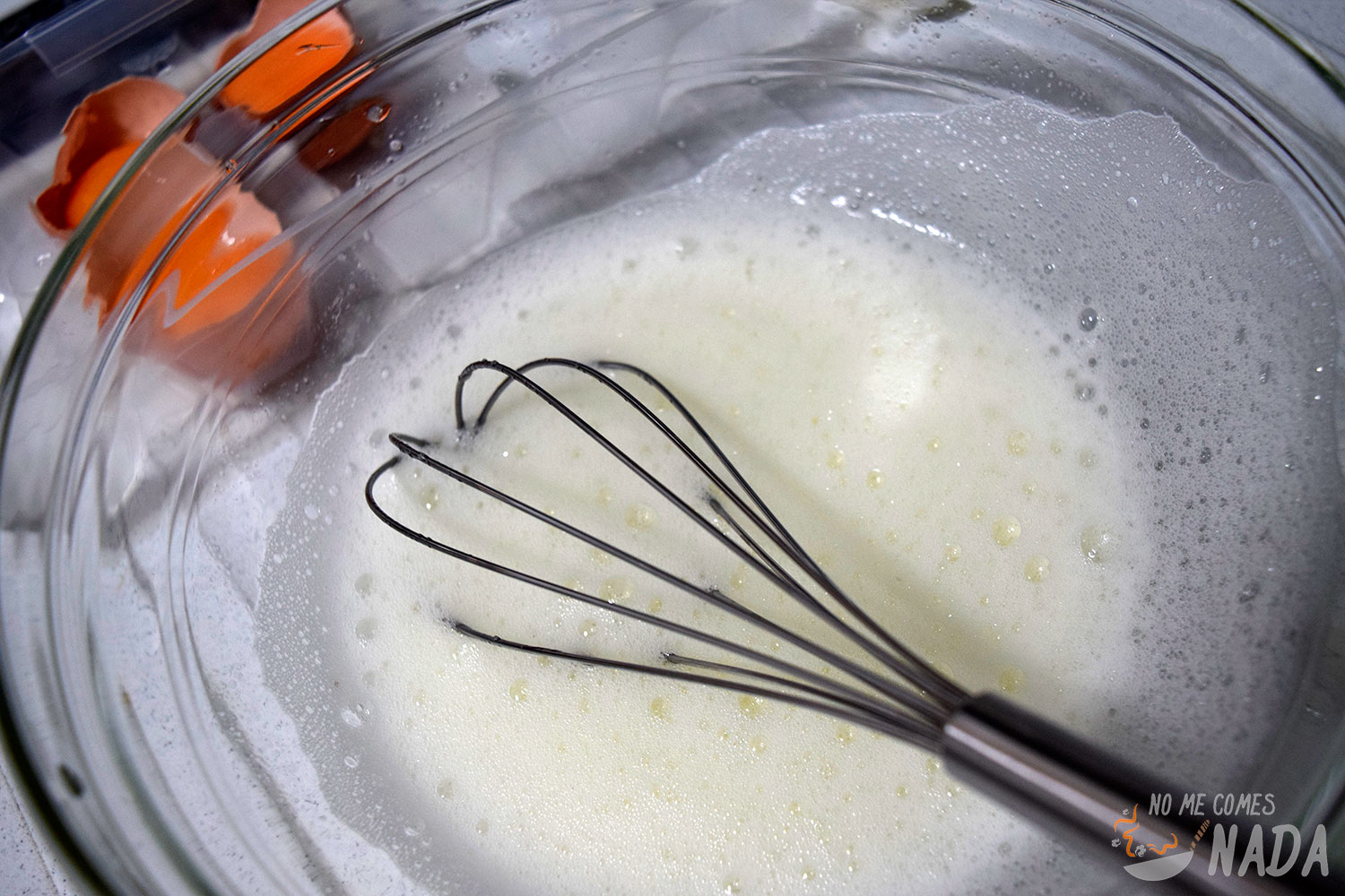Separamos las claras de las yemas y montamos las primeras a punto de nieve con ayuda de unas varillas, si las tenéis. De todas formas, yo siempre he mezclado todo usando un simple tenedor… todo es cuestión de batir bien :)