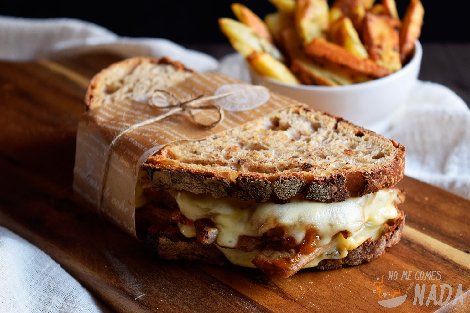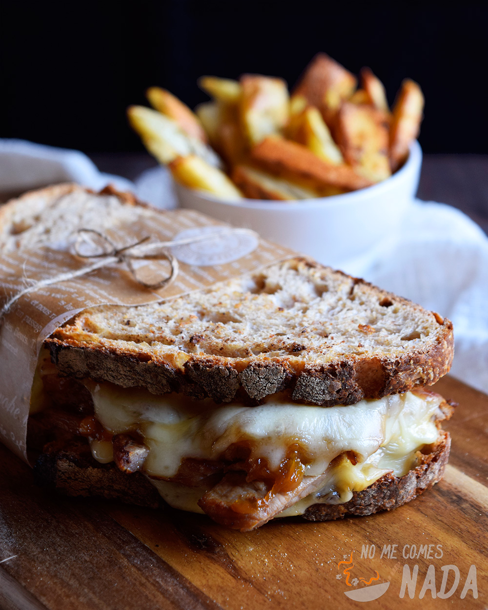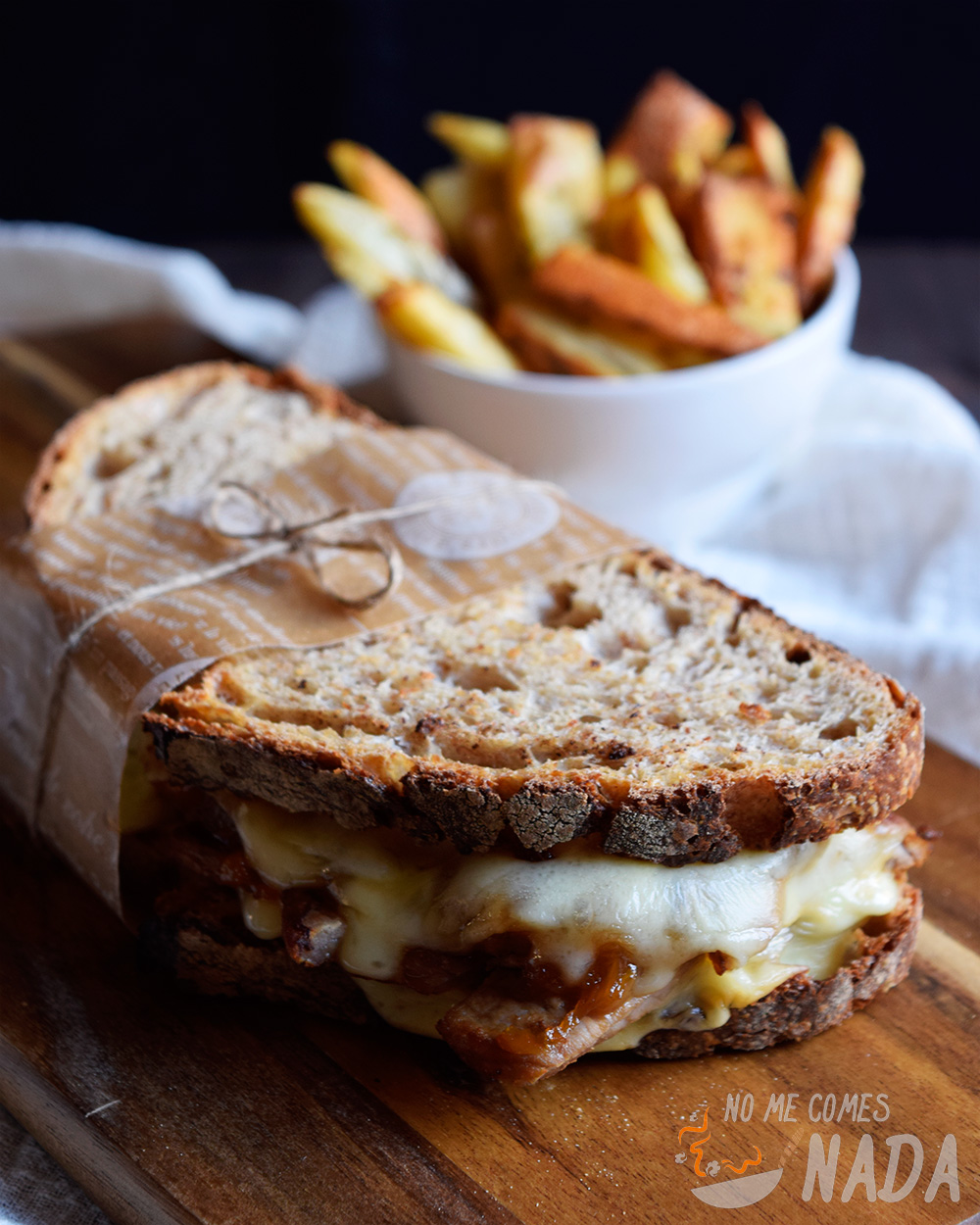 Y para no desperdiciar que puse el horno, preparé unas patatas deluxe para acompañar esta maravilla de bocadillo de ternera y cebolla caramelizada.