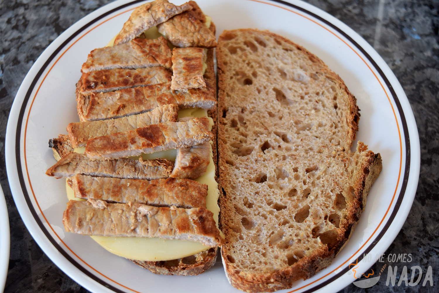 Pues aclarado este punto, vamos con nuestro bocadillo de ternera y cebolla caramelizada, que tampoco tiene ninguna historia ![]()
