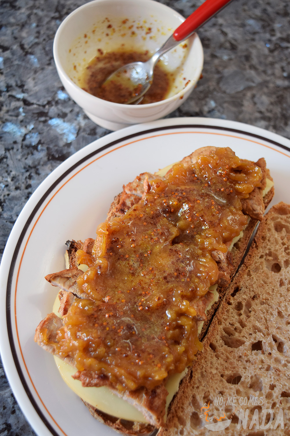 Por si solamente con el nombre no estáis aún babeando, este bocadillo de ternera y cebolla caramelizada va aderezado con una salsa de mostaza y miel que combina genial con la carne.
