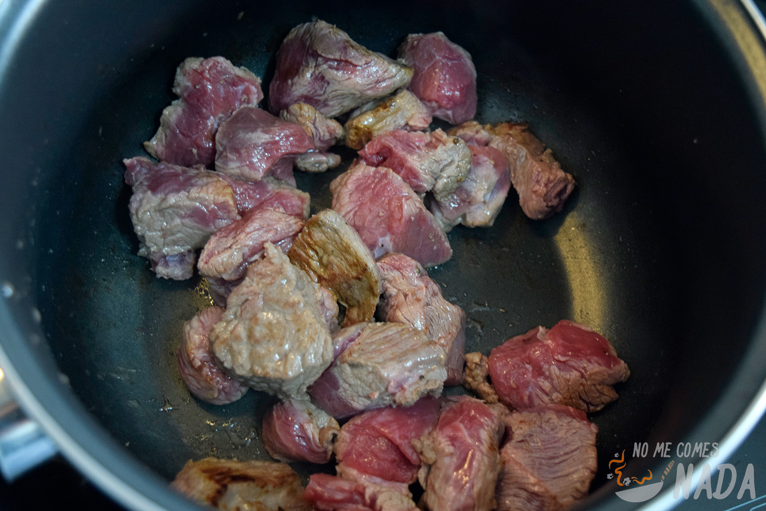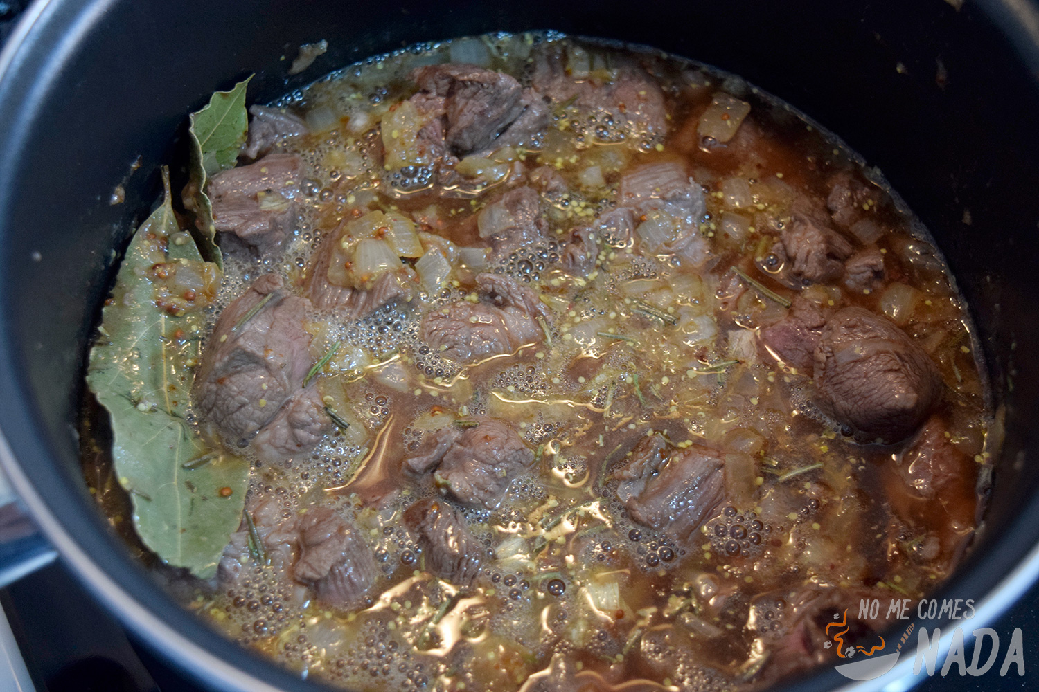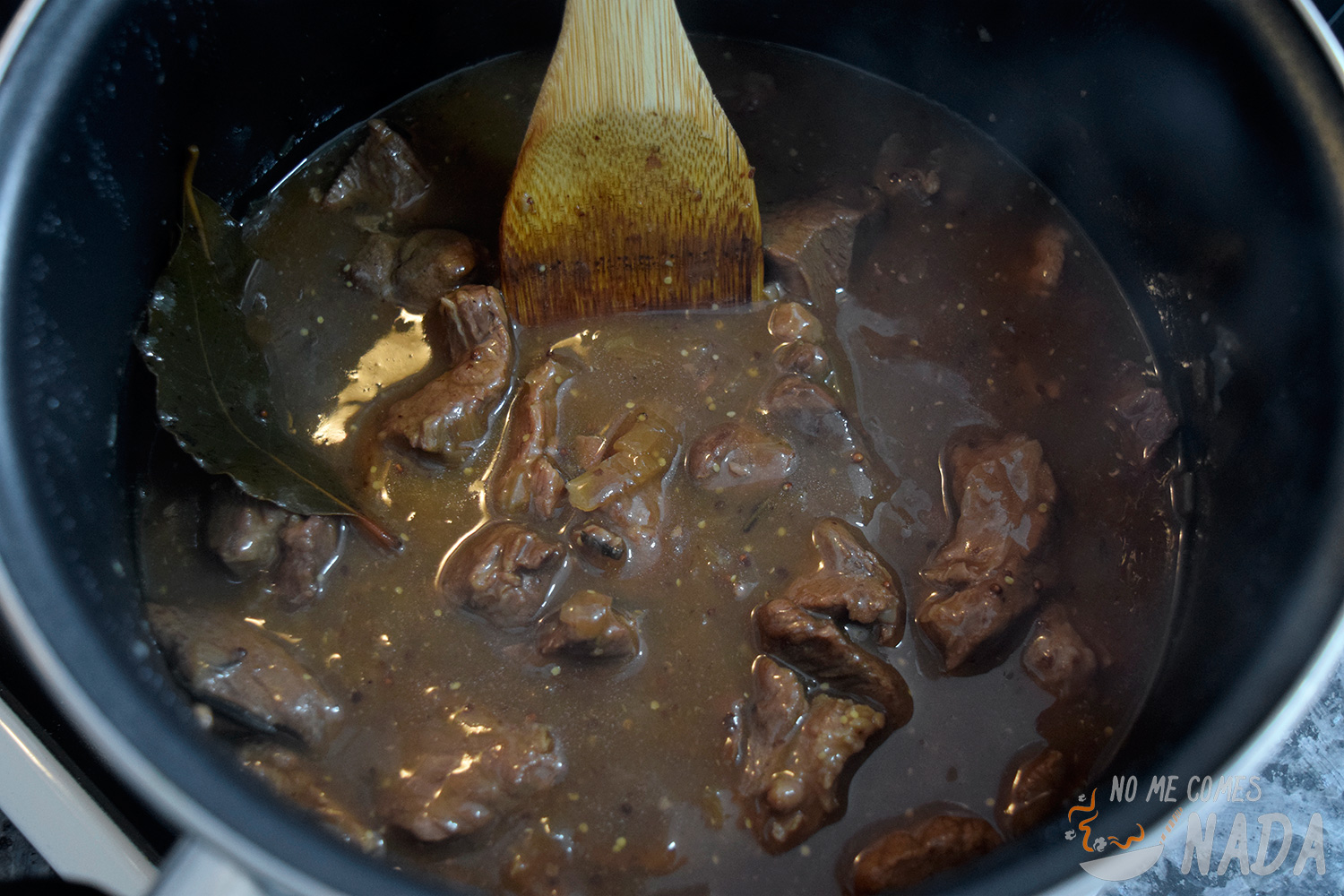 Si os gusta que los guisos tengan una salsa fina, cuando la carne esté tierna podéis sacarla y triturar la salsa. Yo la he dejado tal cual, pero eso es a gusto del consumidor :