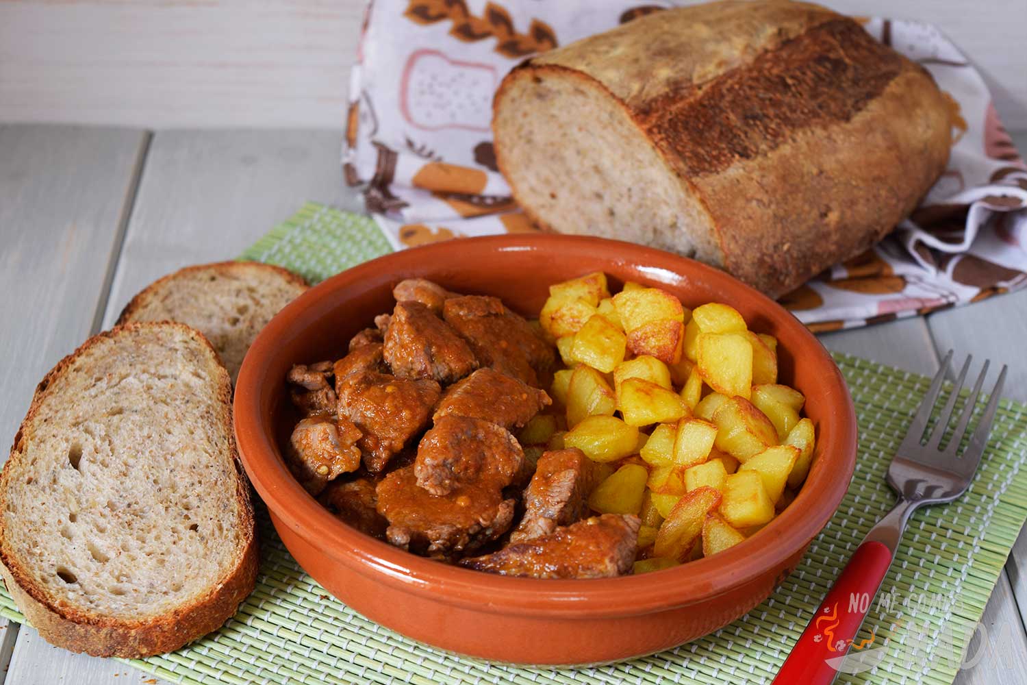 Servimos la carne en salsa con unas patatas risoladas y una buena rebanada de pan casero para rebañar el plato