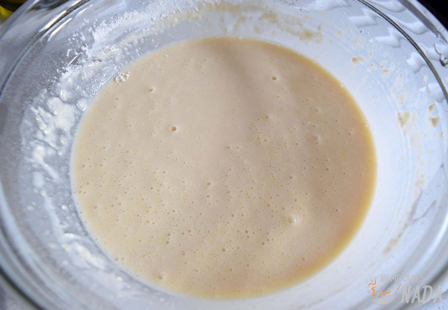 La masa resultante se puede usar en el momento pero recomendamos que se deje reposar al menos unos 30 minutos en el frigorífico. Pasado el tiempo de reposo, sacamos del frigorífico y removemos un poco ya que estará algo más espesa, tenemos que conseguir una textura de crema líquida.