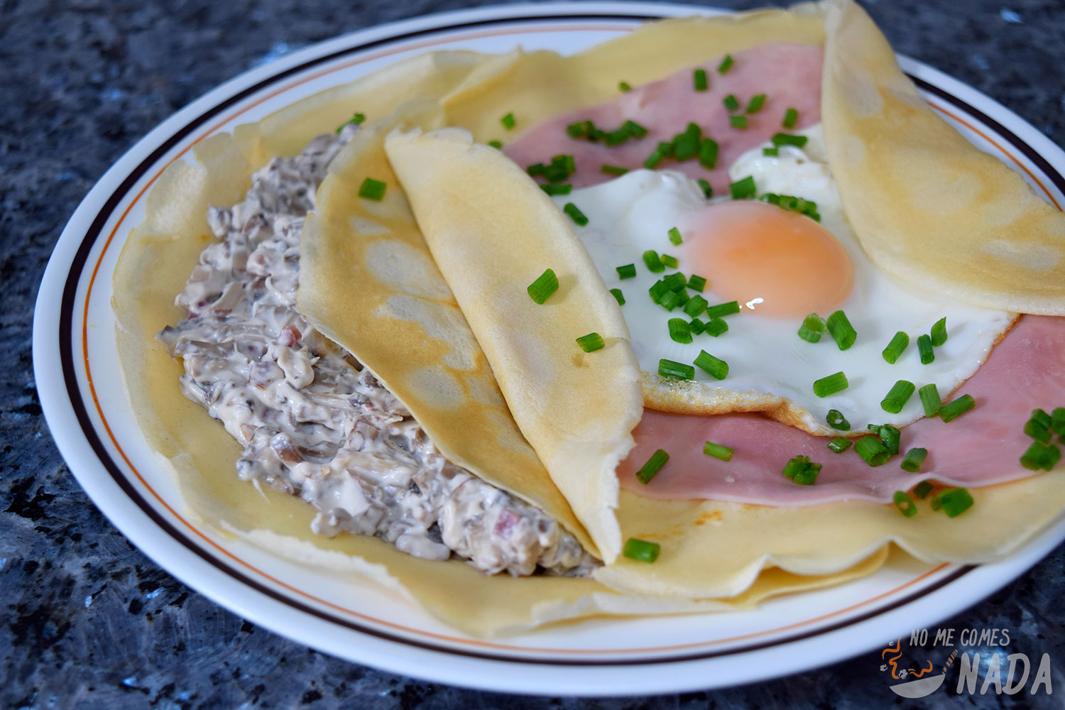 En Francia se suele conocer como crep completa a la crep de jamón york, queso y huevo. Algo muy sencillo, totalmente tradicional y que no necesita más explicaciones :)