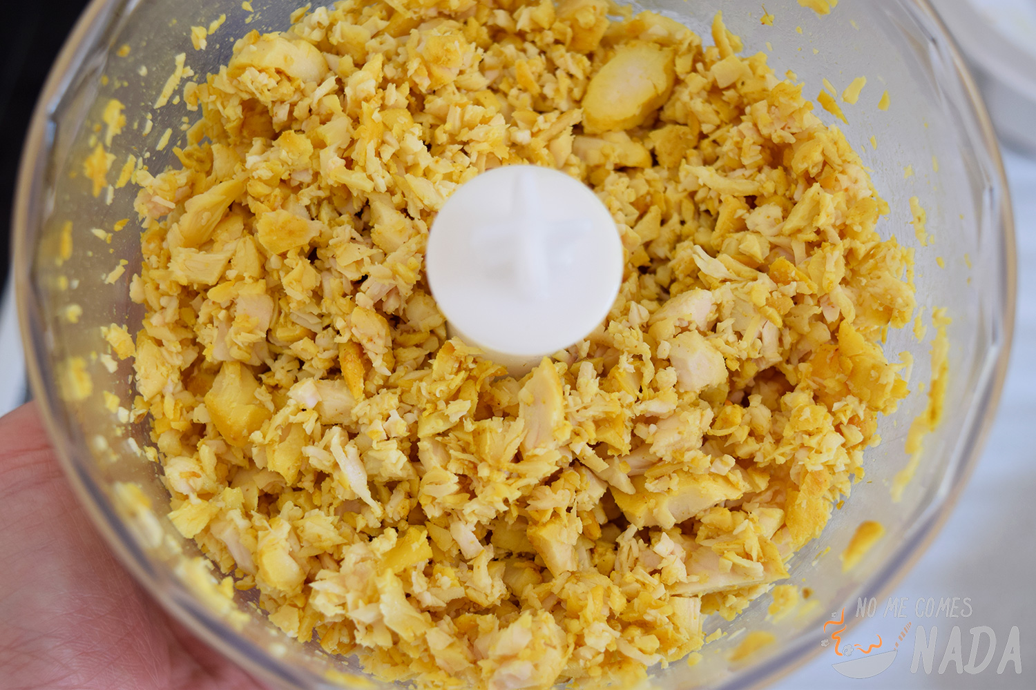 En mi caso, para las croquetas que veis en las fotos, utilicé la media de ambos rangos, es decir unos 250 g de pinchitos y unos 450 g de caldo de pollo