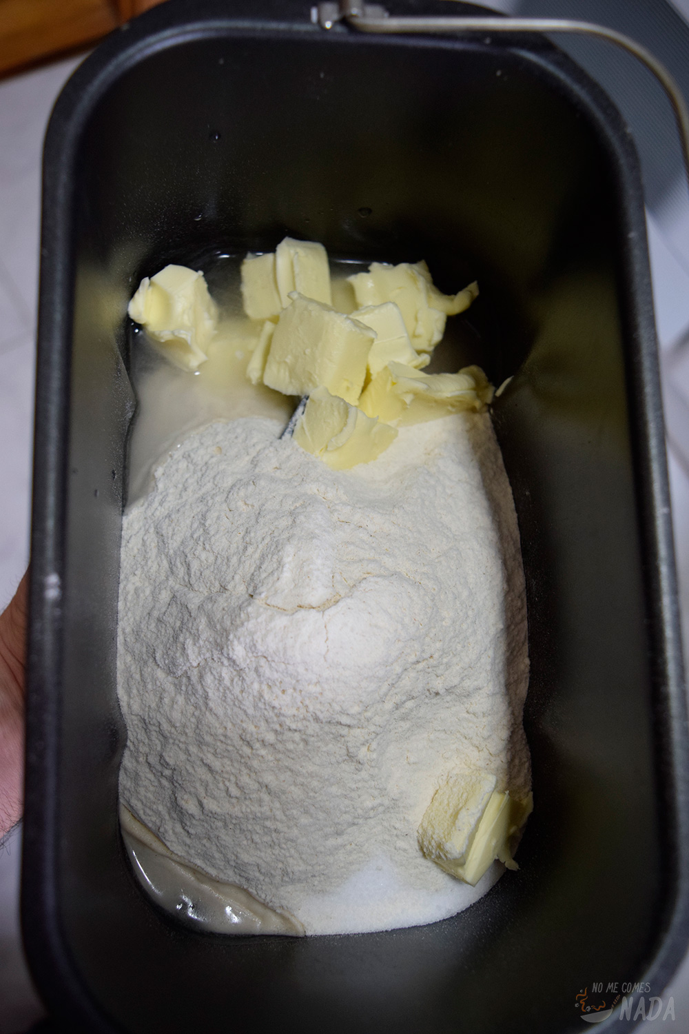 Empezaremos preparando la masa de las empanadas. Para ello simplemente mezclamos todos los ingredientes a amasamos hasta que estén bien integrados y tengamos una masa lisa y firme. Si tenéis cualquier electrodoméstico que os amase (panificadora, robot de cocina, etc.), os ahorraréis el amasado a mano En mi caso hice la masa en la panificadora. Una vez lista la masa, la dejamos reposar, tapada, mientras preparamos le relleno.