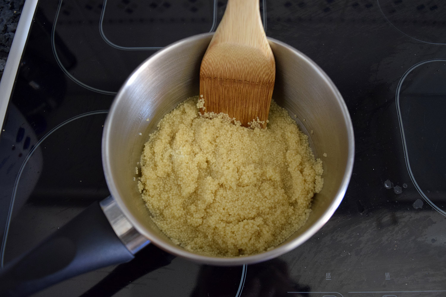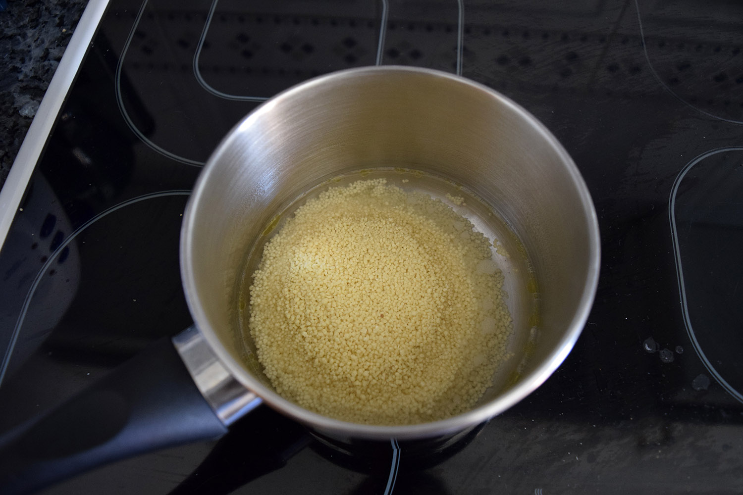 Empezaremos haciendo el cous-cous siguiendo las instrucciones que aparecen en el envase. En el caso del que yo he utilizado, la cocción del cous-cous se hace de la siguiente manera: