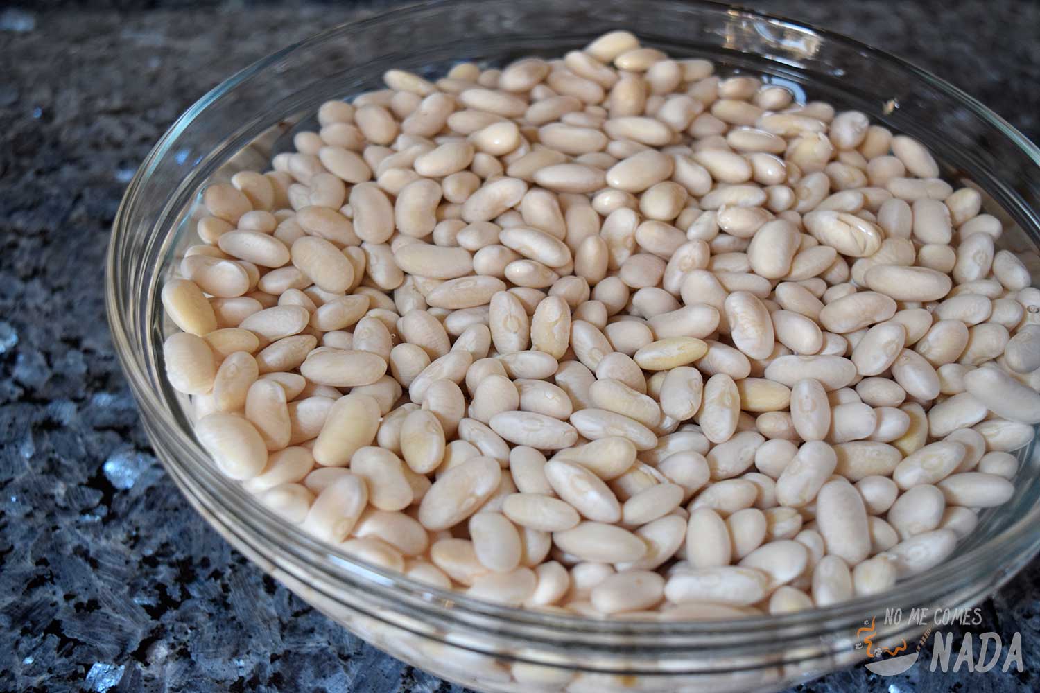 La noche anterior, dejamos en remojo las alubias en agua fría para que se hidraten y se ablanden, de esta manera reduciremos el tiempo de cocción de la fabada.