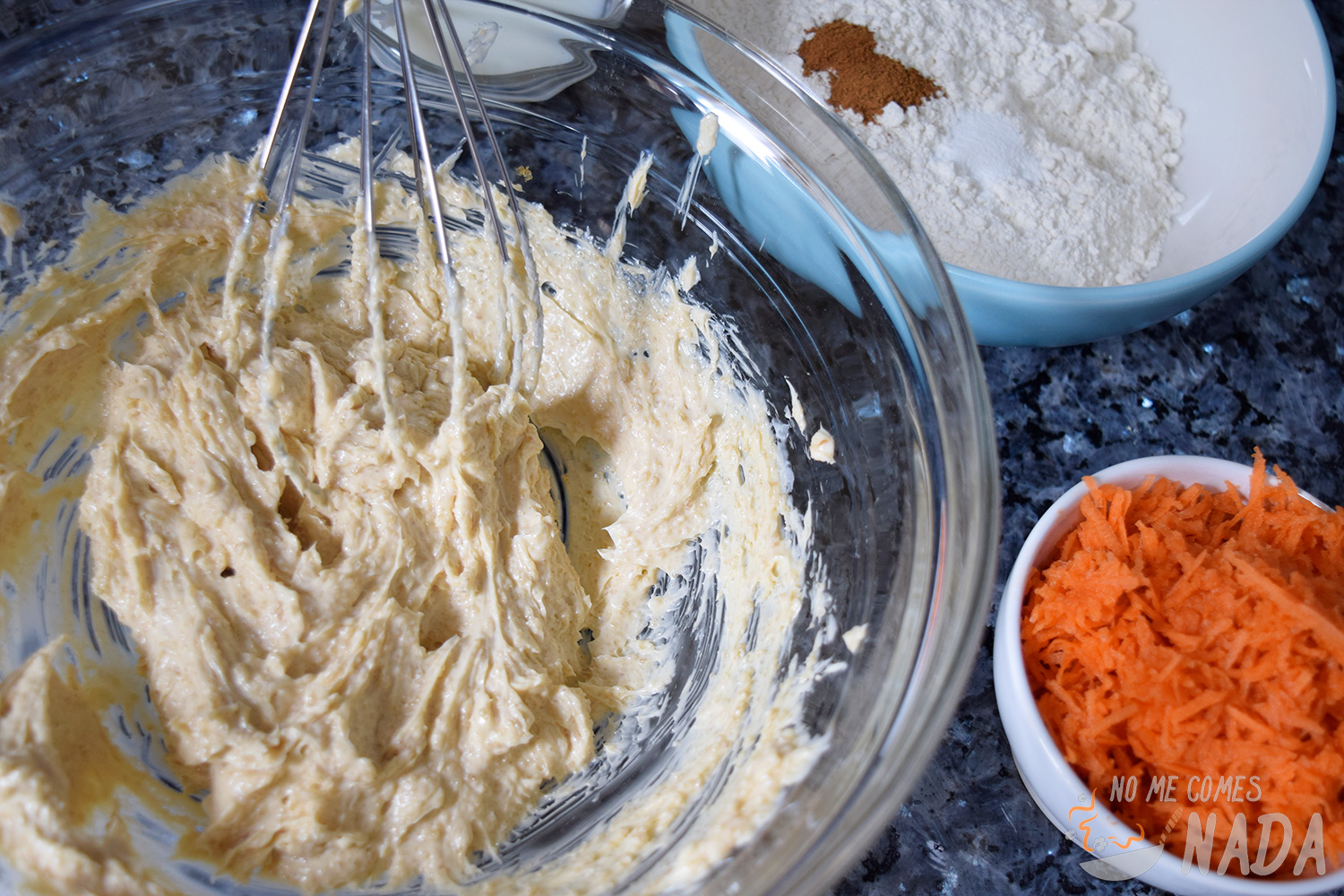 Ahora viene la parte opcional, si la zanahoria es grande (en mi caso era una zanahoria bien hermosa) no vais a necesitar añadir la leche a la masa porque la zanahoria tiene ya suficiente agua. Si, por el contrario, habéis rallado una zanahoria pequeña, podéis aligerar un poco la masa añadiendo leche.