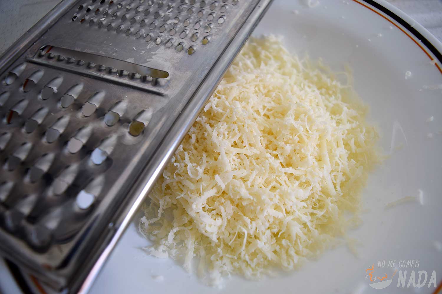 Por otro lado, rallamos el queso parmesano y lo reservamos también. La cantidad es un poco al gusto de cada uno pero unos 30 g de queso sería una cantidad normal aunque a mí personalmente me gusta echarle bien de queso.