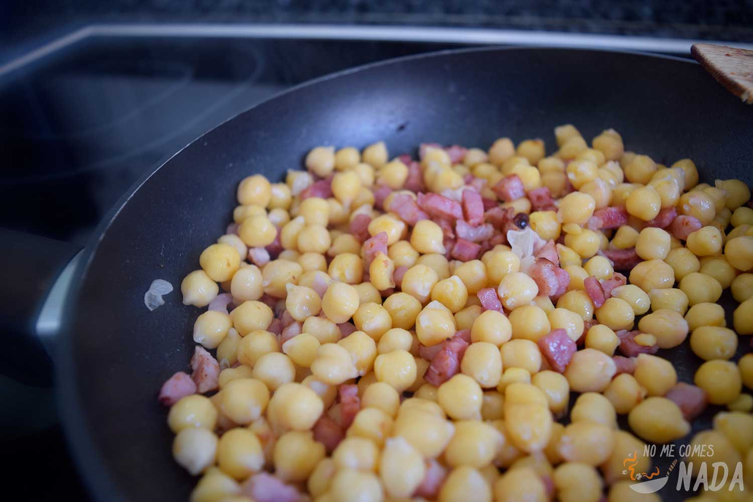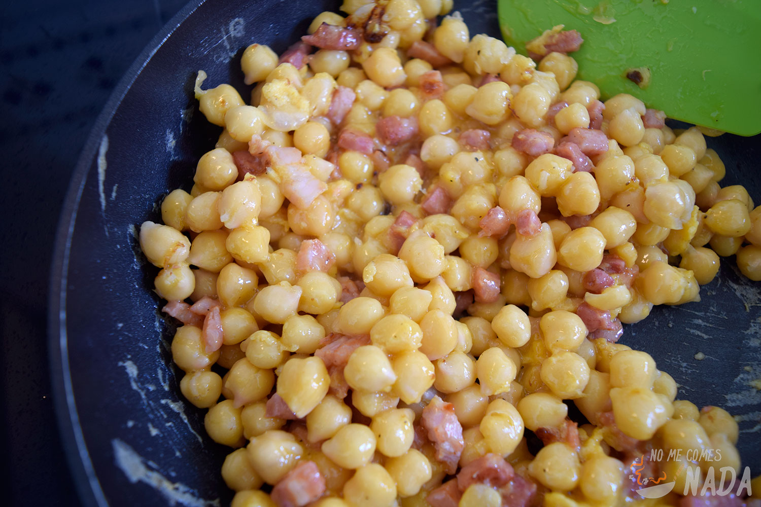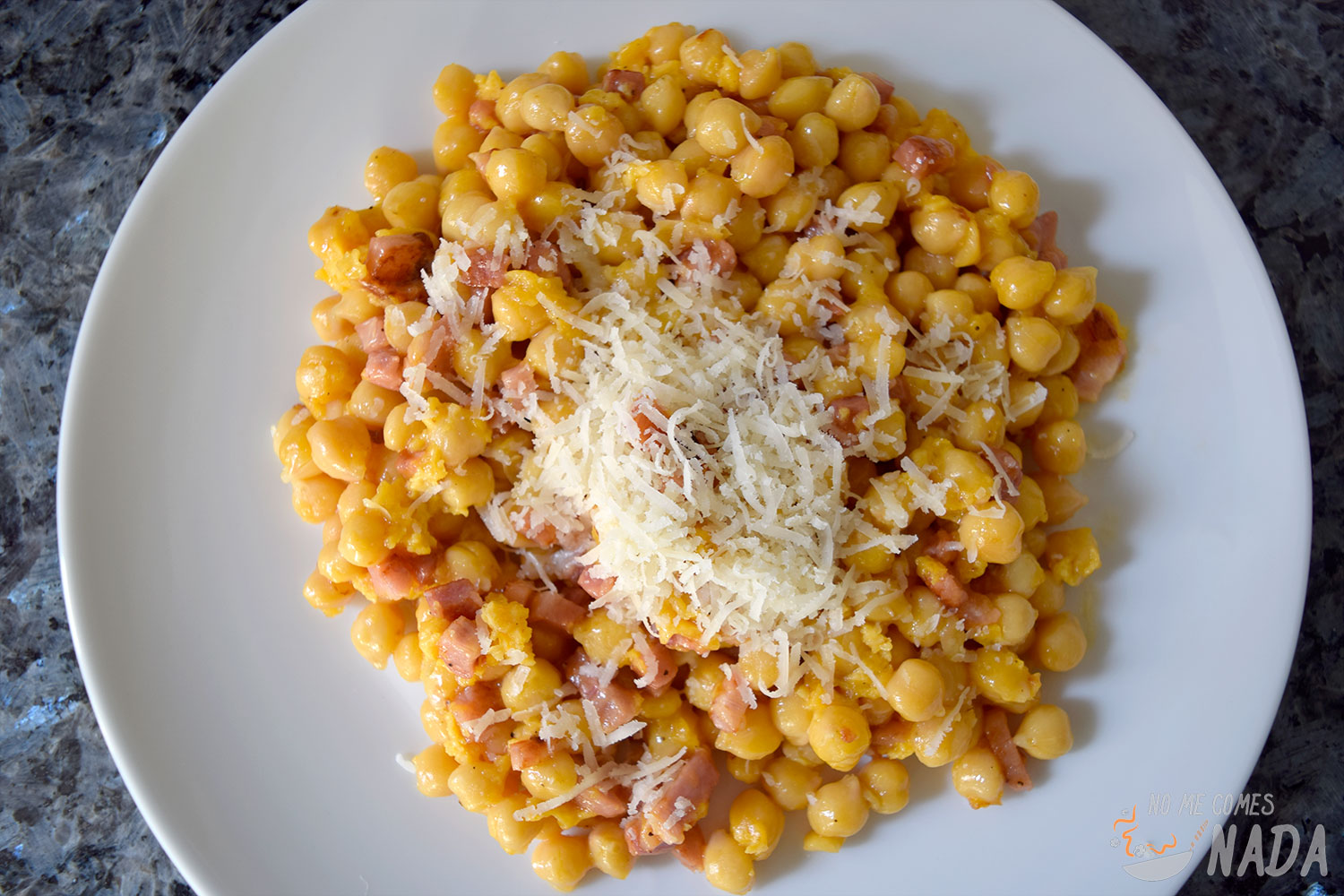Solo nos queda degustar nuestros garbanzos a la carbonara calentitos recién servidos.