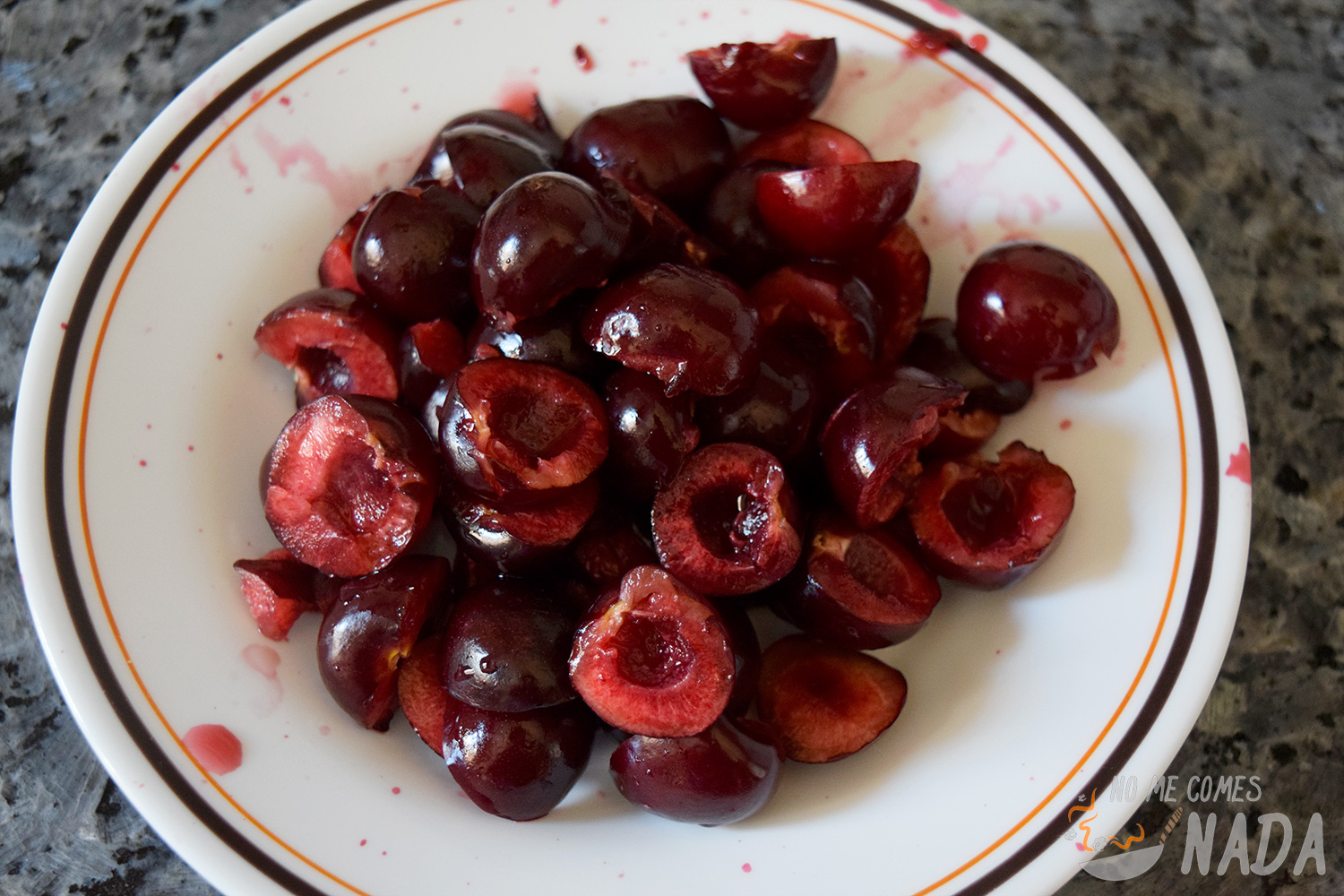 Preparar este gazpacho de cerezas no puede ser más sencillo, se tarda 5 minutos contados. Bueno… eso contando con tener las cerezas deshuesadas jajaja que es la única parte tediosa de la receta y por la que empezaremos.