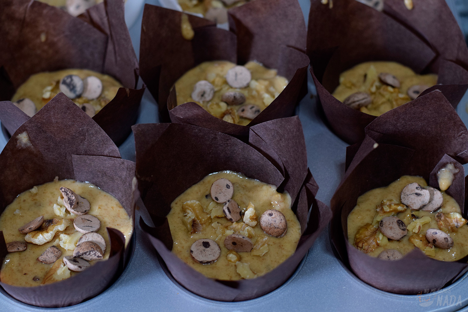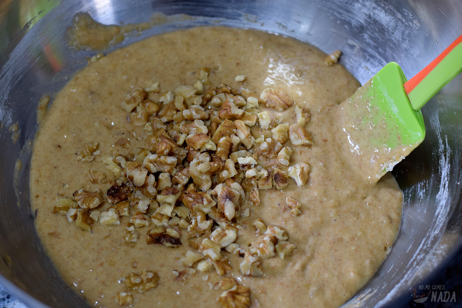 Por último, añadimos las nueces troceadas y las mezclamos para que se repartan bien por la masa.