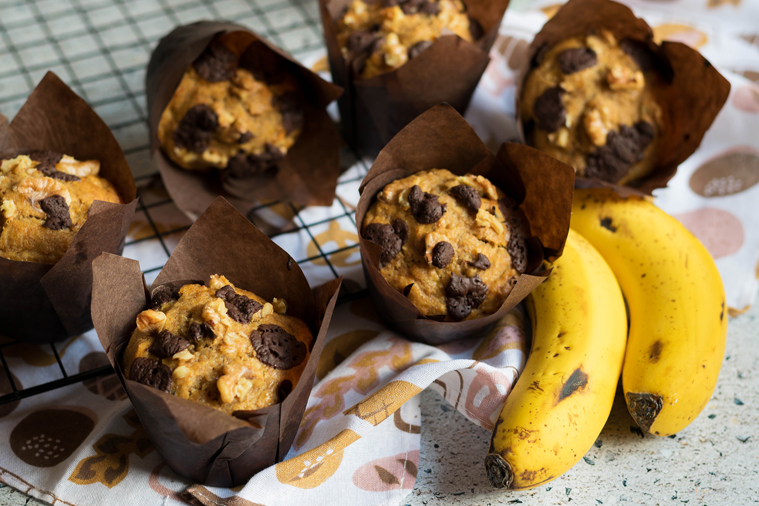 Sí, los plátanos muy maduros son el ingredientes perfecto para muchas recetas de repostería y así evitar tirarlos a la basura. Estas magdalenas de plátano y nueces son el ejemplo perfecto para aprovechar esos plátanos pochos. Además, los plátanos combinan genial con las nueces (como se suele hacer con el pan de plátano).