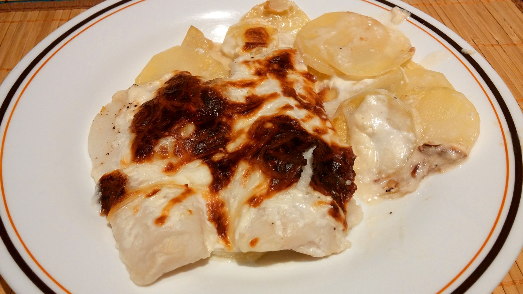 El pescado es uno de los alimentos que suele gustar menos a los niños pequeños (y otros no tan pequeños…) y hay que buscar formas de cocinarlo para que les guste. Esta receta es ideal para este propósito: merluza al horno con patatas y nata.