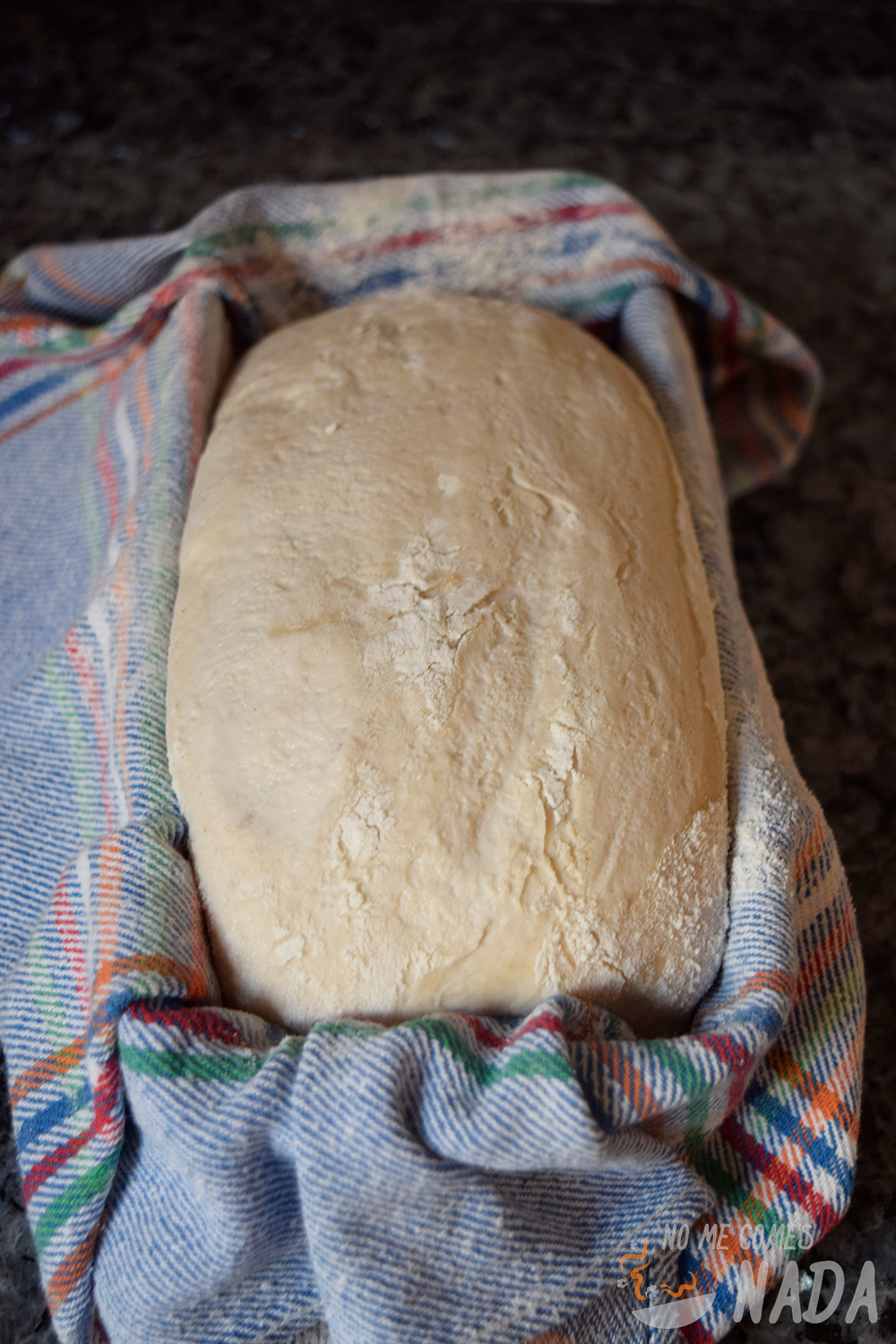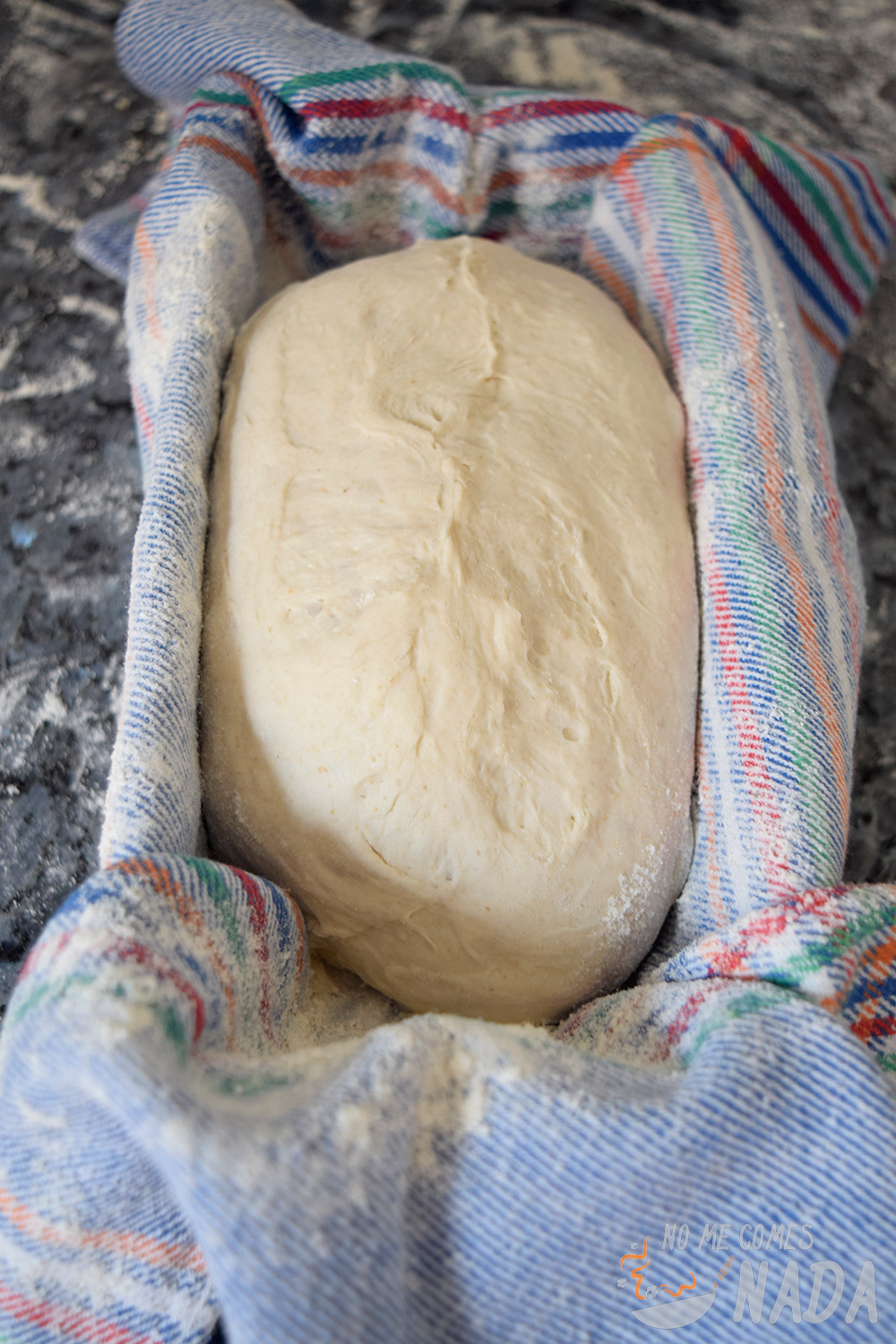 Pues una vez que tenemos nuestro pan con masa madre con la forma que queramos, lo dejaremos en el recipiente donde haremos la segunda fermentación. Para que veáis que no es necesario utilizar banetones (cestas para fermentación), en las fotos podéis ver que yo he utilizado un molde alargado de pyrex. Basta con poner un trapo bien harinado en el recipiente y listo