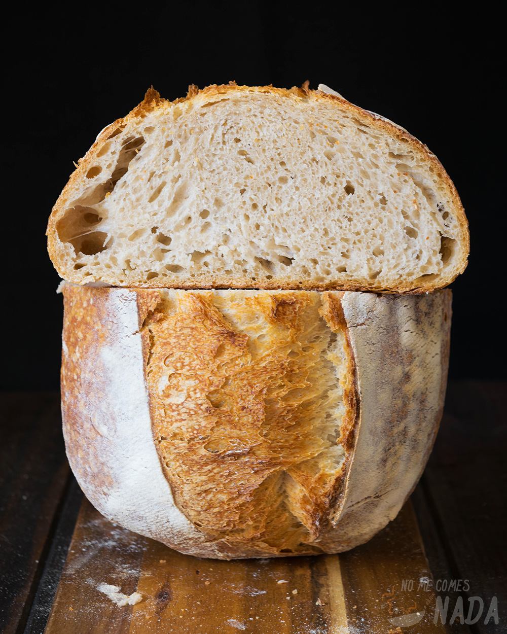 Y tras esta inmeeeensa receta ya tenemos nuestro pan con masa madre listo jajaja Os aseguro que, aunque parezca muy largo el proceso, de tiempo efectivo no van a ser más de 40 minutos, el resto del tiempo será esperando.