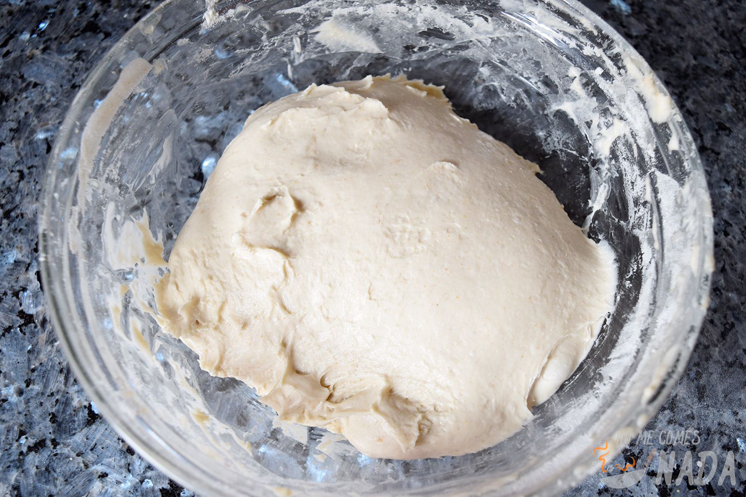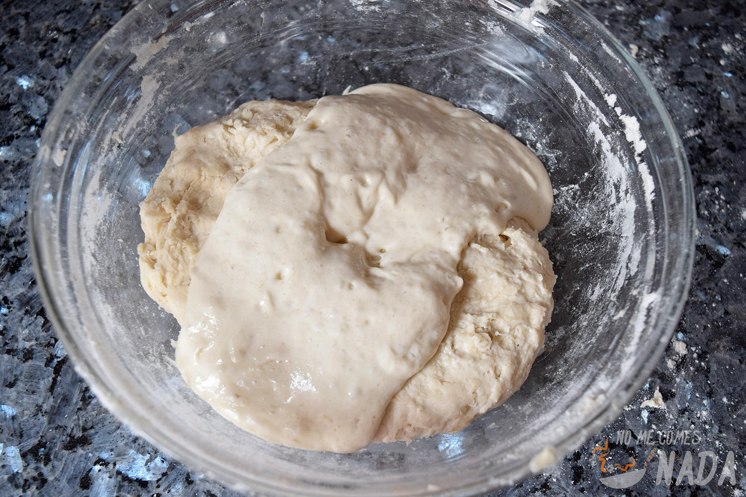 Al ser una masa bastante hidratada (buen porcentaje de agua), nos va a costar un poco manejarla de primeras. Lo mejor para este tipo de masas es hacer un amasado francés y como explicarlo por escrito es muy complicado, os recomiendo mucho que os veáis este vídeo de “El Horno de Babette” donde lo explican con pelos y señales Aunque al principio os pueda parecer que es imposible amasar un pan de esa manera, luego no sabréis hacerlo de otra jajajaja Y os lo digo por experiencia personal.