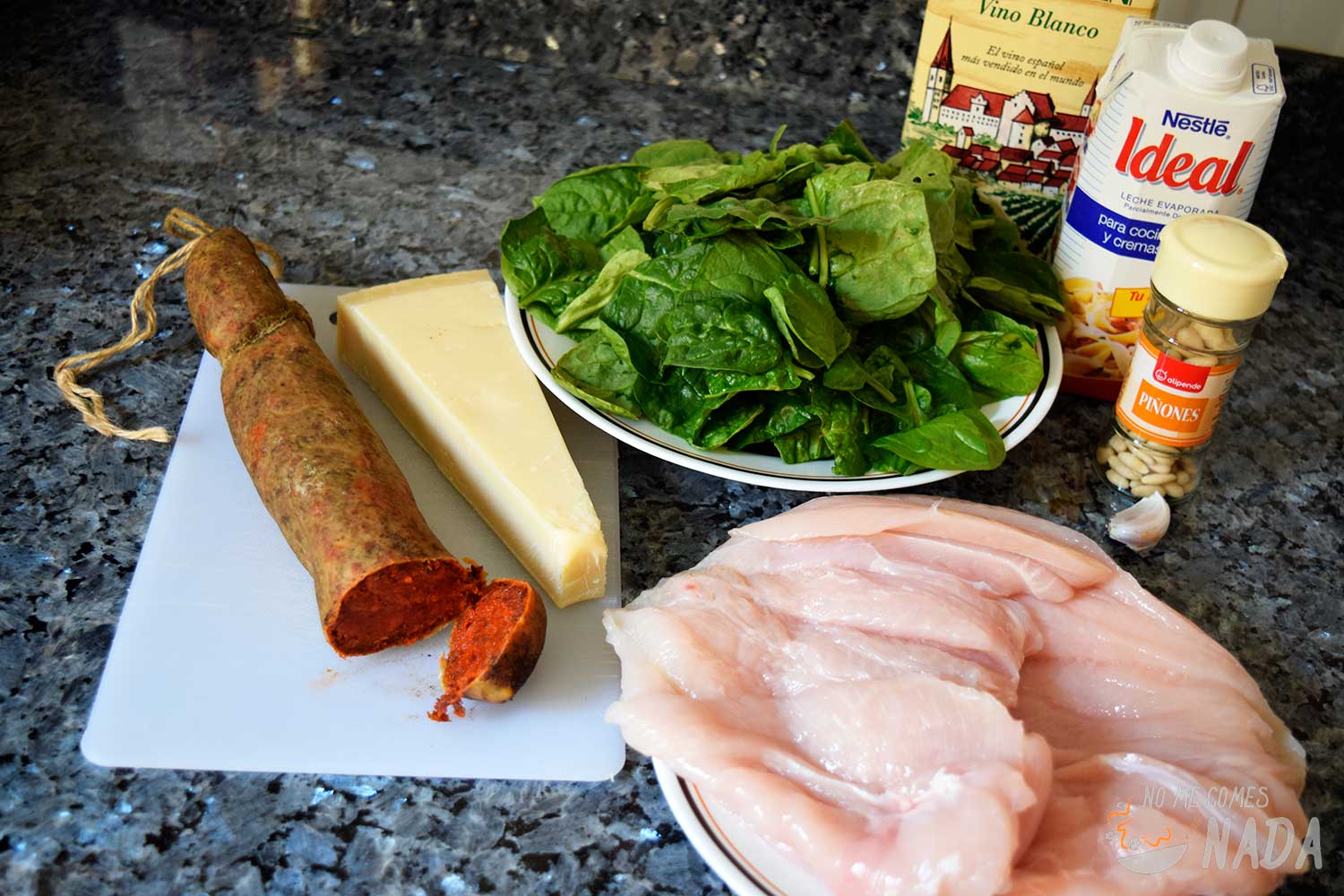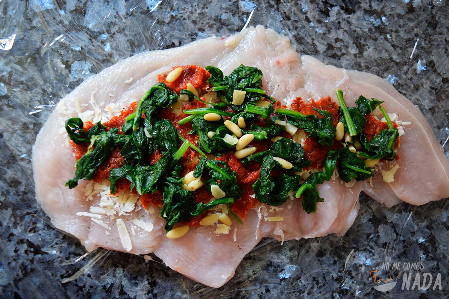 Pechugas de pollo rellenas de sobrasada, espinacas y queso