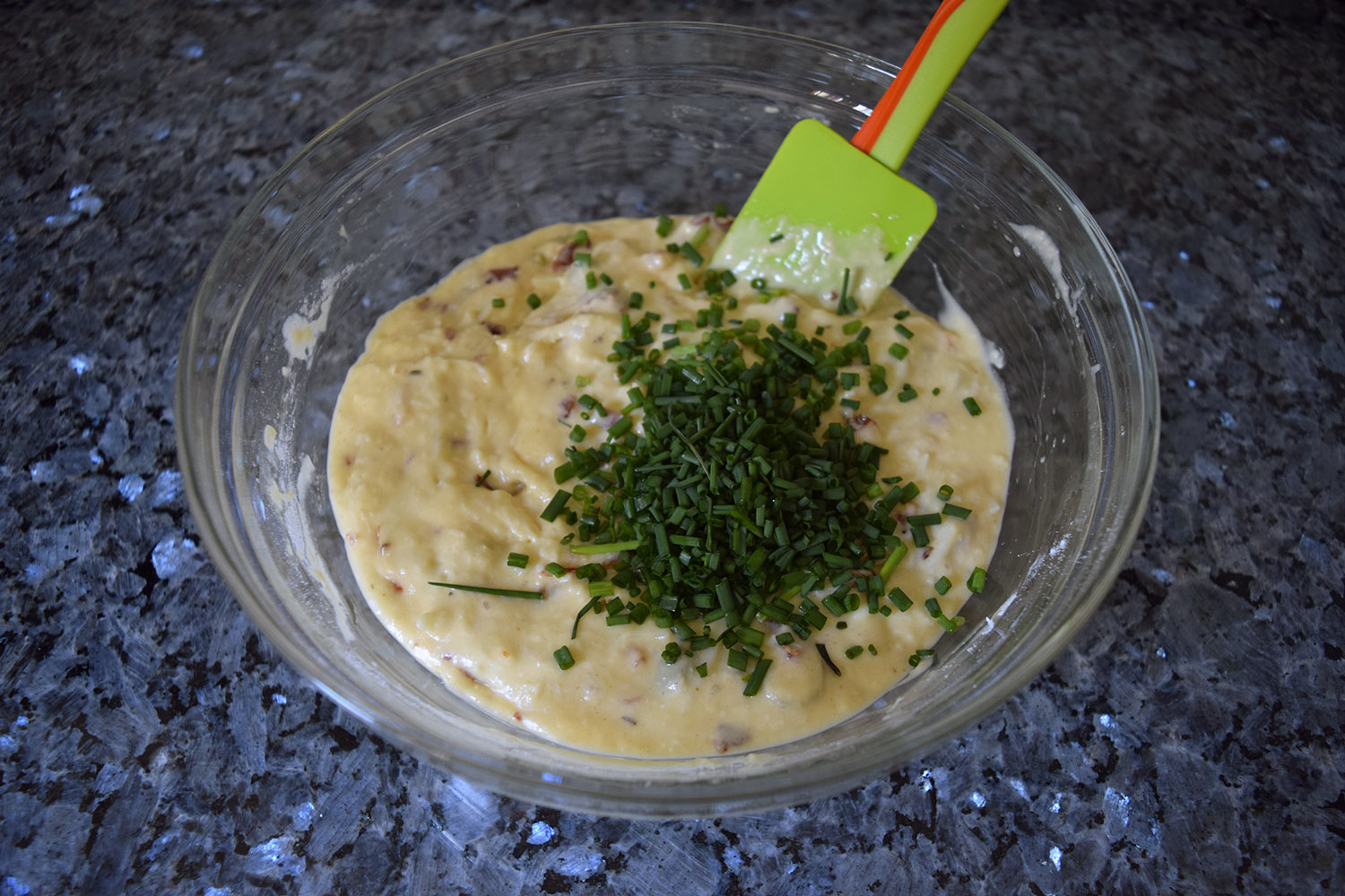 Lo ideal para mezclar/batir sería tener una batidora de varillas pero si no es posible se puede hacer manualmente con unas varillas normales o con un tenedor si tampoco tenéis varillas (como es mi caso…). Hay que poner especial atención en mezclar bien cuando echemos la harina para evitar que se formen grumos, hay que conseguir que la harina se integre bien con el huevo y la mantequilla.