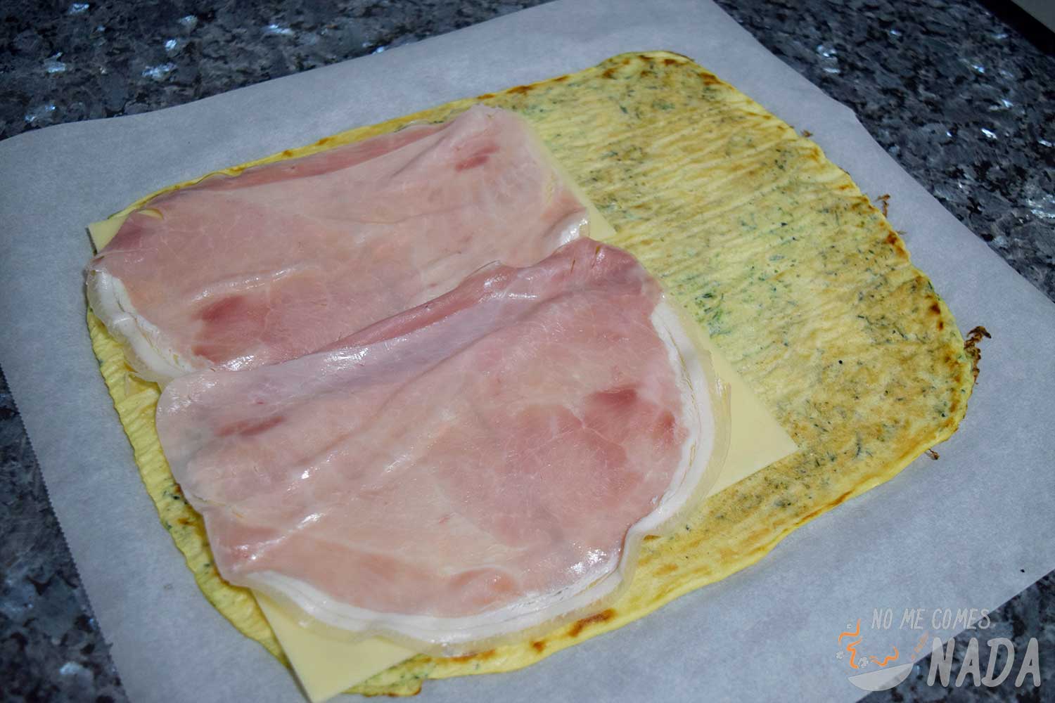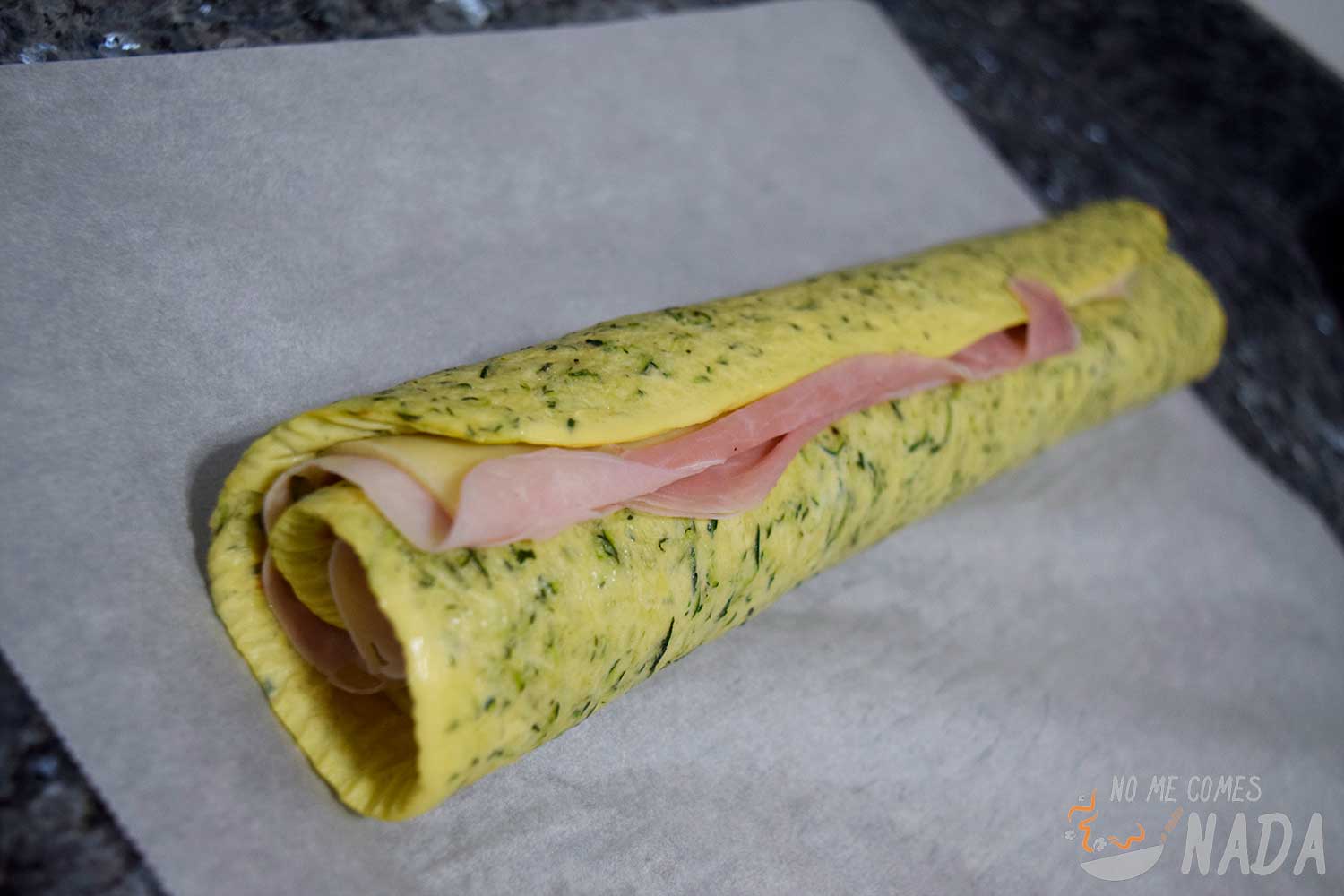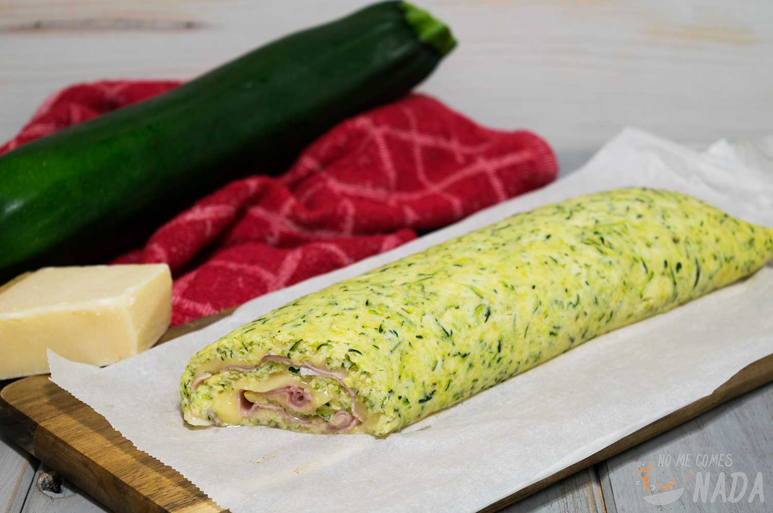 Hoy vengo con un plato ligerito, ideal para cenar: rollo de calabacín con jamón y queso.