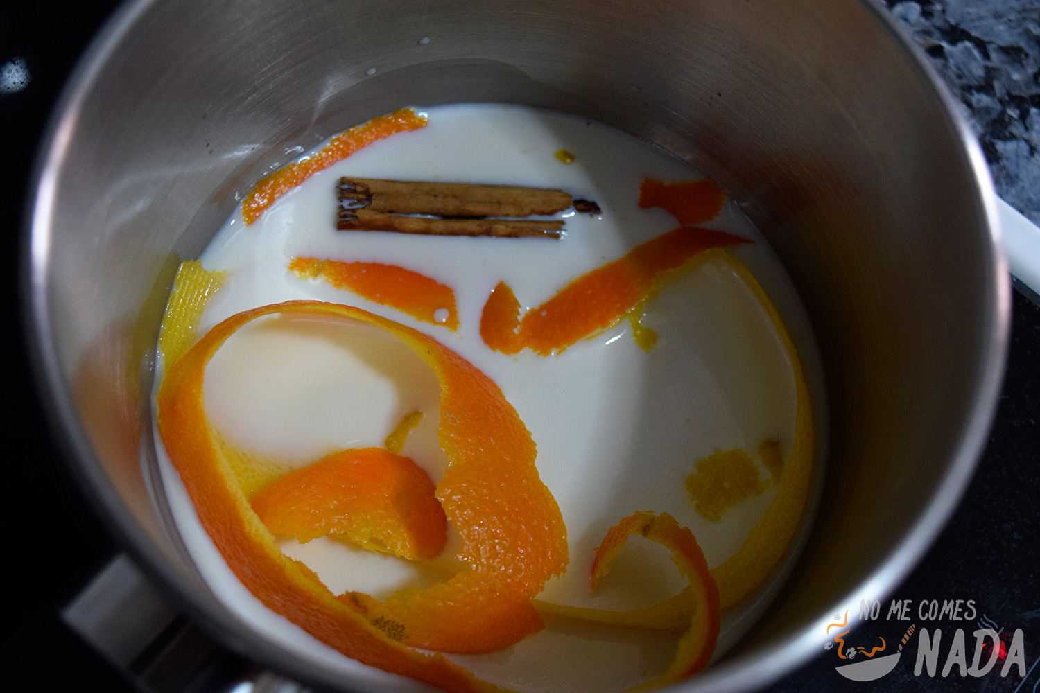 Si queréis un roscón de Reyes muy aromático, podéis preparar la infusión de leche el día anterior también y dejarla reposar toda la noche porque cuanto más tiempo la tengamos infusionando, más sabor y aromas tomará. De todas formas, siempre la podéis preparar en el momento de hacer la masa del roscón de Reyes. Para prepararla solo tenéis poner la leche junto con la rama de canela y las cortezas de los cítricos a hervir durante 5 minutos. Retiramos del fuego y dejamos reposar (hasta que se enfríe o bien toda la noche).