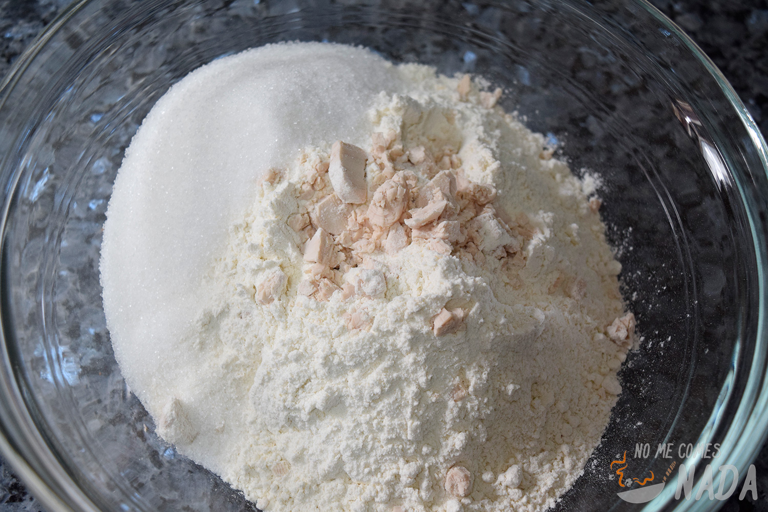 El día anterior empezaremos preparando la madre de levadura, que no deja de ser un prefermento que nos ayudará a que nuestro roscón de Reyes tenga más sabor y dure más tiempo sin ponerse duro. Para prepararla simplemente tenemos que disolver la levadura fresca en la leche, añadir la harina y amasar hasta obtener una masa homogénea. Guardamos la madre de levadura en un recipiente hermético y la dejamos en la nevera hasta el día siguiente ![]()