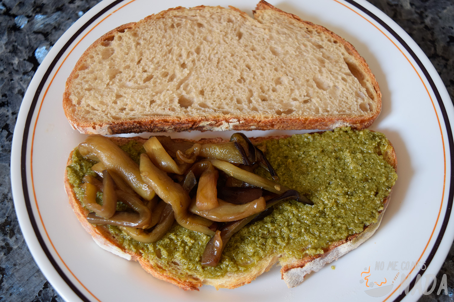 ¿Recordáis el pan con masa madre de la semana pasada? Pues hoy lo vamos a utilizar para preparar un delicioso sándwich de berenjena y pesto.