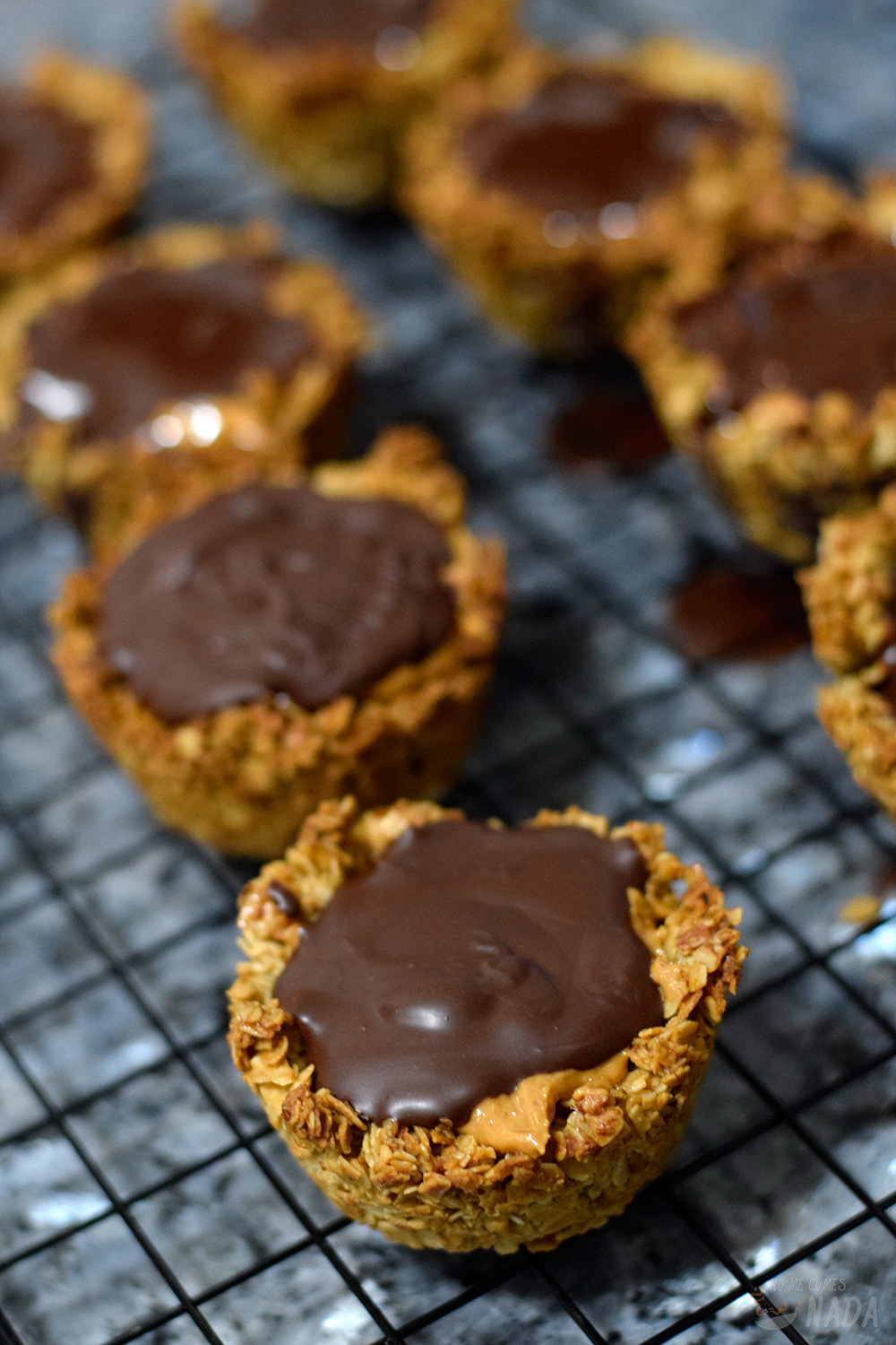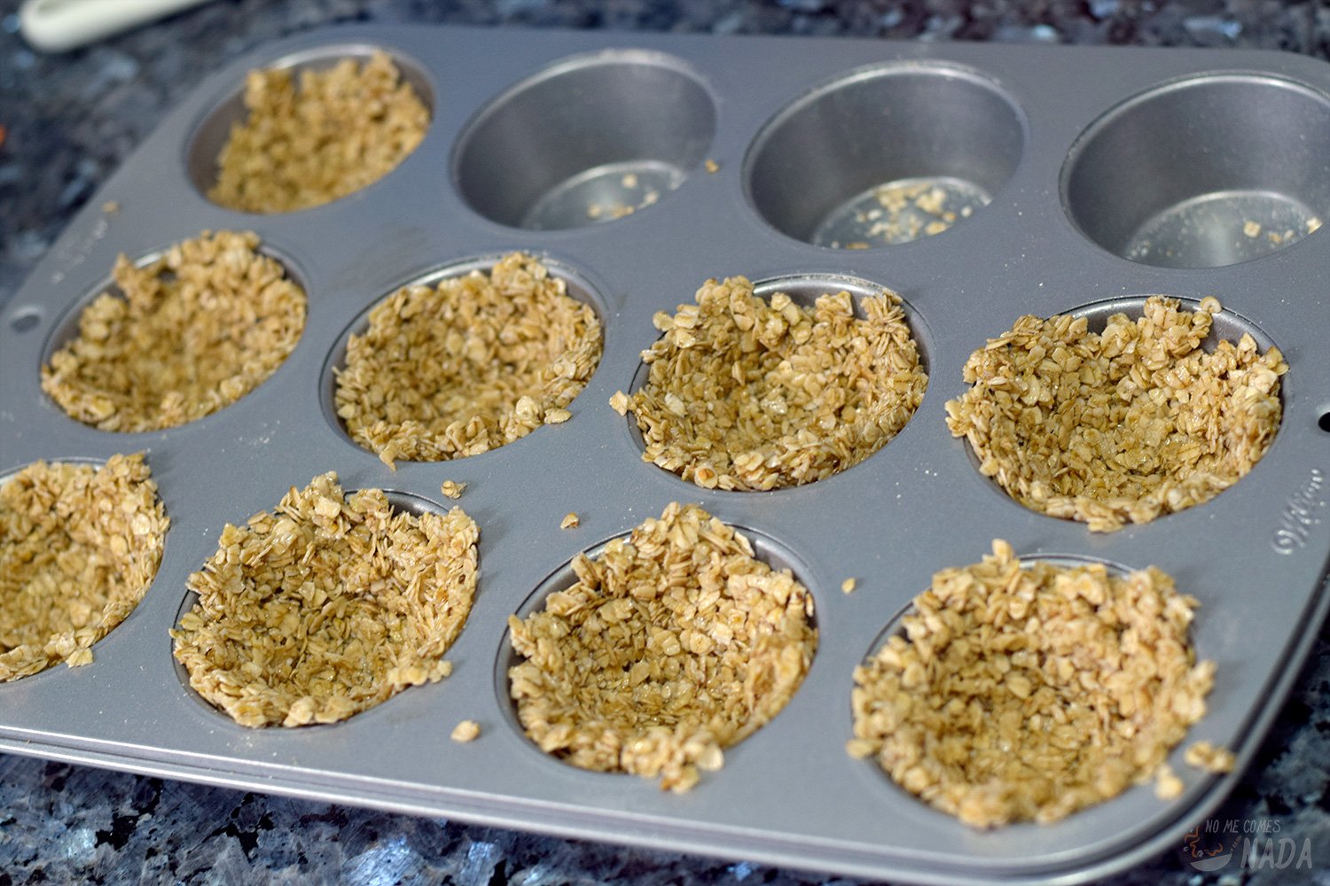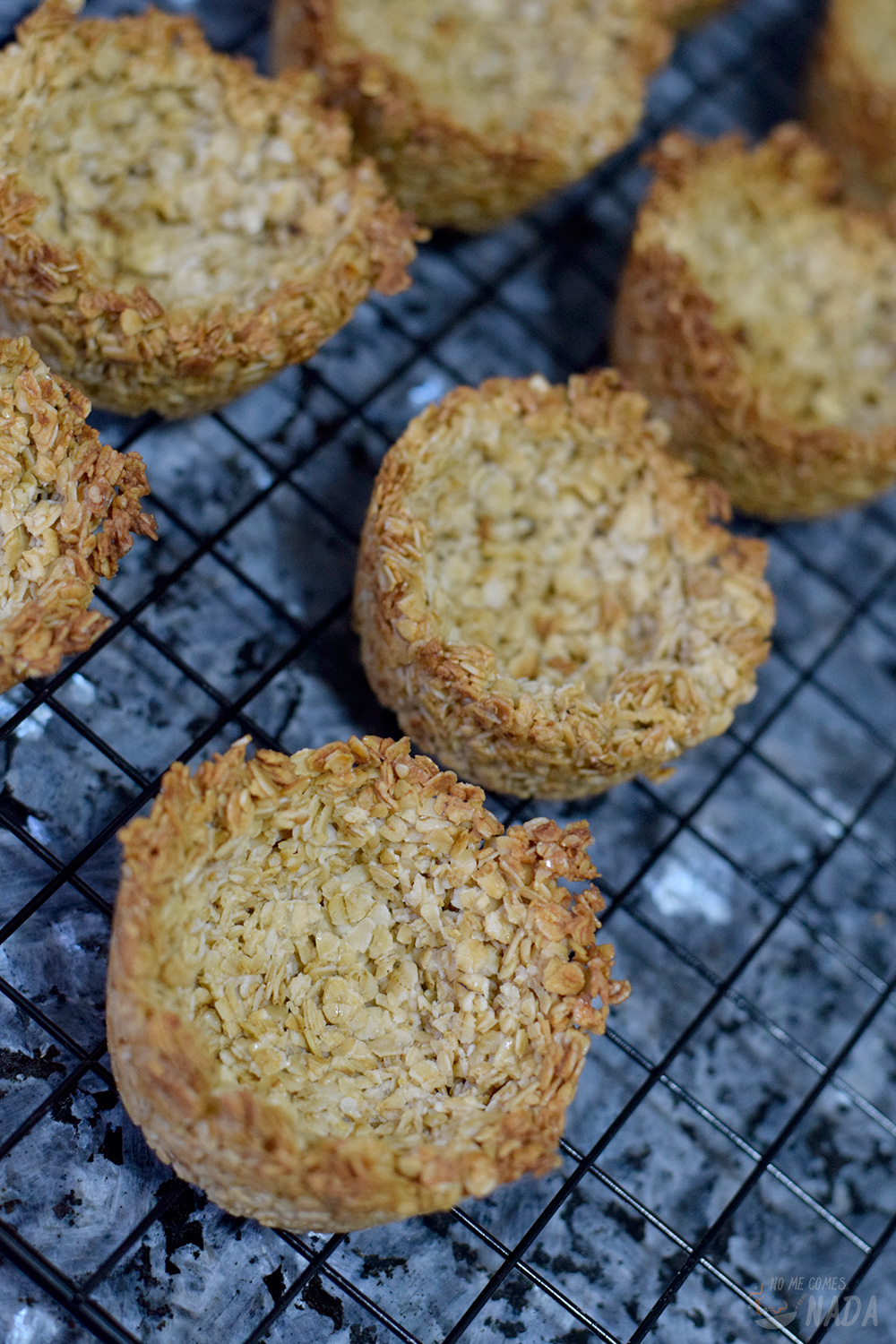 Al principio puede parecer un poco complicado darle la forma porque la avena se os va a quedar pegada en la cuchara o en las manos, en vez de en el molde jajaja Tener unas tartaletas perfectas es cuestión de práctica