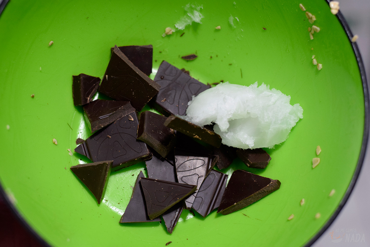- 100 g de chocolate negro 85% + 1 cucharada de aceite de coco
