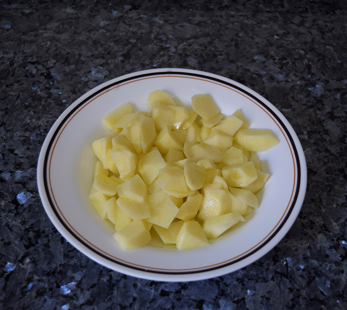 Lo primero es hacer las patatas. Lo normal, y como quedan más sabrosas, es freírlas en la sartén pero yo siempre las hago al microondas para que no tengan tanto aceite y sean más “light”.