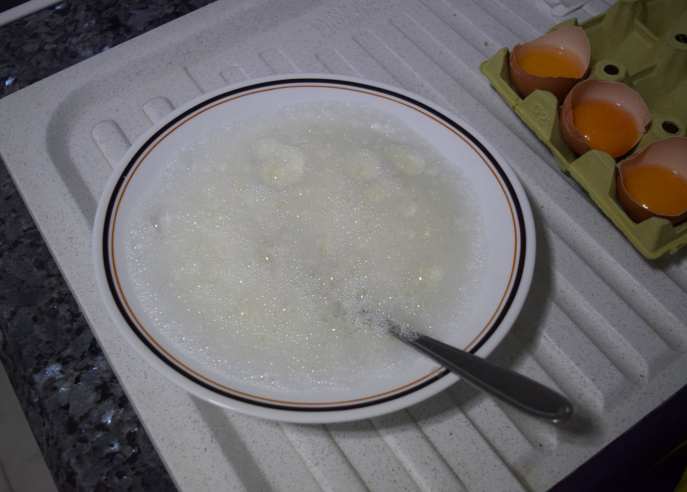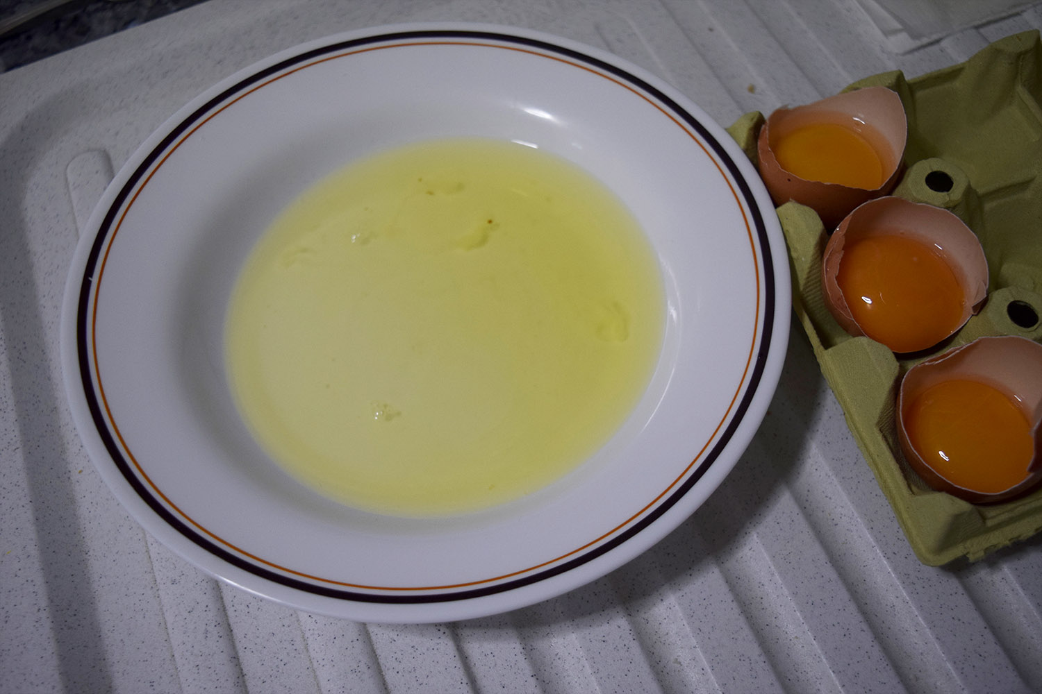 Para separar las claras podéis usar los típicos utensilios que venden para este fin pero con un poco de maña se pueden separar perfectamente usando la misma cáscara del huevo. Rompiendo el huevo por la mitad y pasando la yema de una mitad a otra dejando caer la clara en el plato.