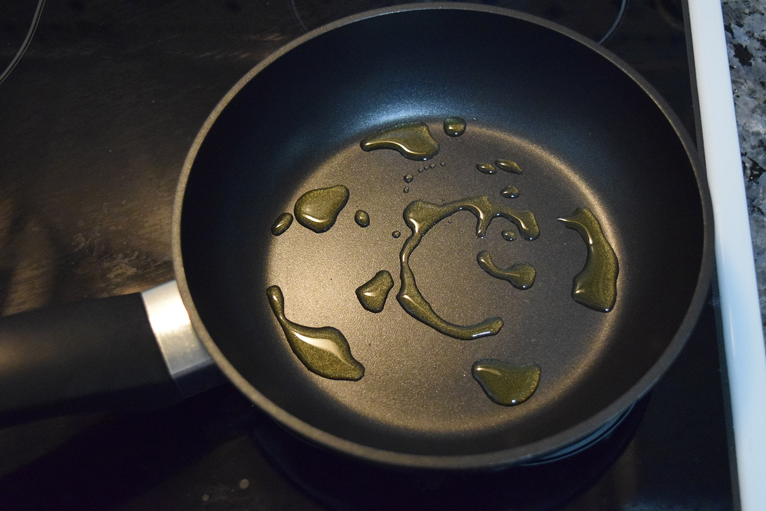 Ahora necesitaremos una buena sartén que no se pegue, algo muy importante para que luego no tengamos problema a la hora de dar la vuelta a la tortilla y la ponemos a fuego medio con un buen chorro de aceite.