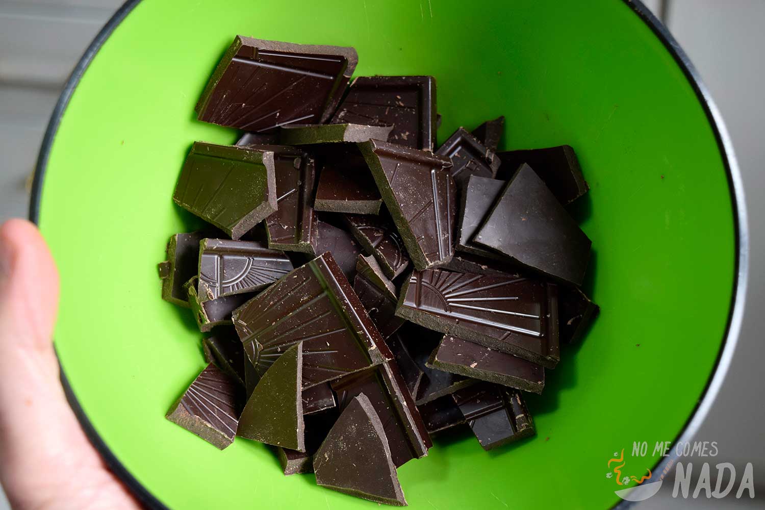 Empezaremos derritiendo el chocolate negro y para ello tenéis dos opciones: al baño maría como toda la vida o en el microondas :) Por rapidez, yo elegí la segunda opción, aunque hay que tener cuidado de que no se queme.