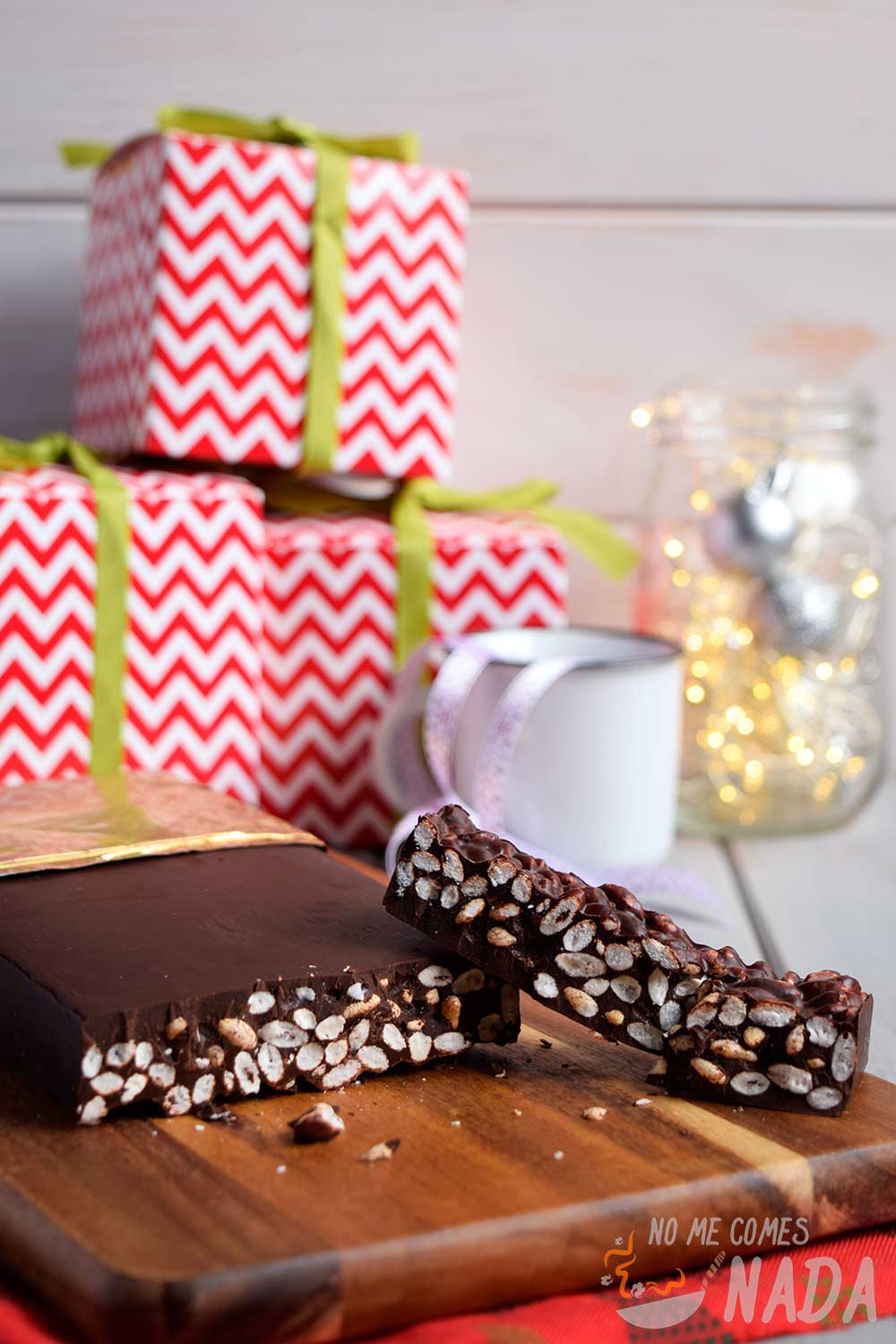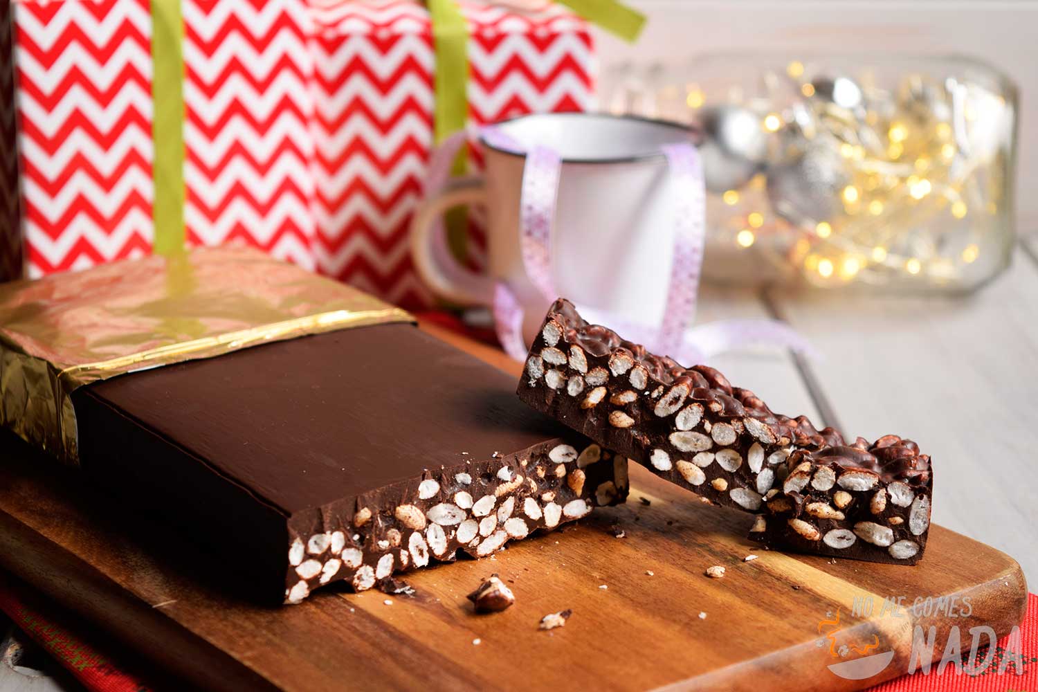 Yo me he decantado por su turrón de chocolate crujiente de arroz inflado por 2 motivos. Por un lado, la obviedad de las fechas…una receta navideña que viene perfecta para publicarla hoy. Y, por otro lado, ¿habéis pensado alguna vez en regalar a vuestro amigo invisible algo de comer hecho por vosotros? Esta receta es perfecta para eso ya que no se tarda nada en hacer, no tiene ninguna dificultad y es económica. En vez de regalar cualquier chorrada que seguramente no vaya a usar, regala un turrón de chocolate crujiente casero y quedas de lujo con tu amigo, un regalo único jajaja
